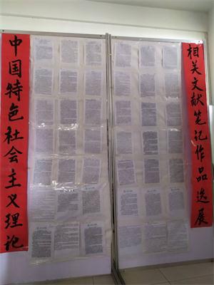 读书节活动持续开展。其中,“源清流正·涵养三观:中国特色社会主义理论相关文献笔记作品选展(庆祝建党百年专辑)”征稿启事发出以来,收到数百位读者供稿。稿件涉及中共几代领导人著作及相关优秀传统经典著作数十篇(部),现遴选展出。从供稿至布展,该活动仍以广大同学为主体,吸引同学积极参与读写和传播。2019级计算机、自动化等专业稿件占比较大,分别居第一和第二。先进理论研读社社长刘岳超等同学协助布展,墨文书法社社长孙健航同学题写展名。