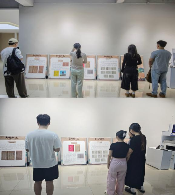 在《汉书》展板前,师生们可以了解到这部由东汉史学家班固撰写的纪传体断代史,记载了上起西汉高帝元年,下至新朝王莽地皇四年的历史,是研究西汉历史的重要资料。展板还展示了明嘉靖年间国子监刊本《前汉书·天文志》的书影,让观众直观感受古籍的魅力。