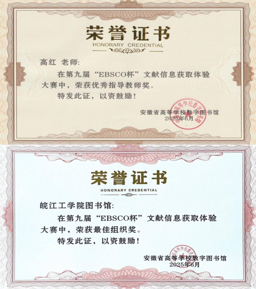 近日,全省第九届“EBSCO杯”文献信息获取体验大赛圆满落幕,beat365正版唯一入口必一学生在此次大赛中表现优异,成绩斐然,充分展现了皖江学子在信息素养和文献检索方面的扎实功底与卓越能力。