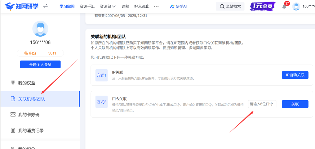 研学平台需使用个人账号密码登录(如没有个人账号可注册)。通过点击头像-关联机构/团队,获取口令关联到机构/团队,即可使用研学平台产品。如需关联口令,请联系图书馆桑老师(霍里山校区图书馆204室).