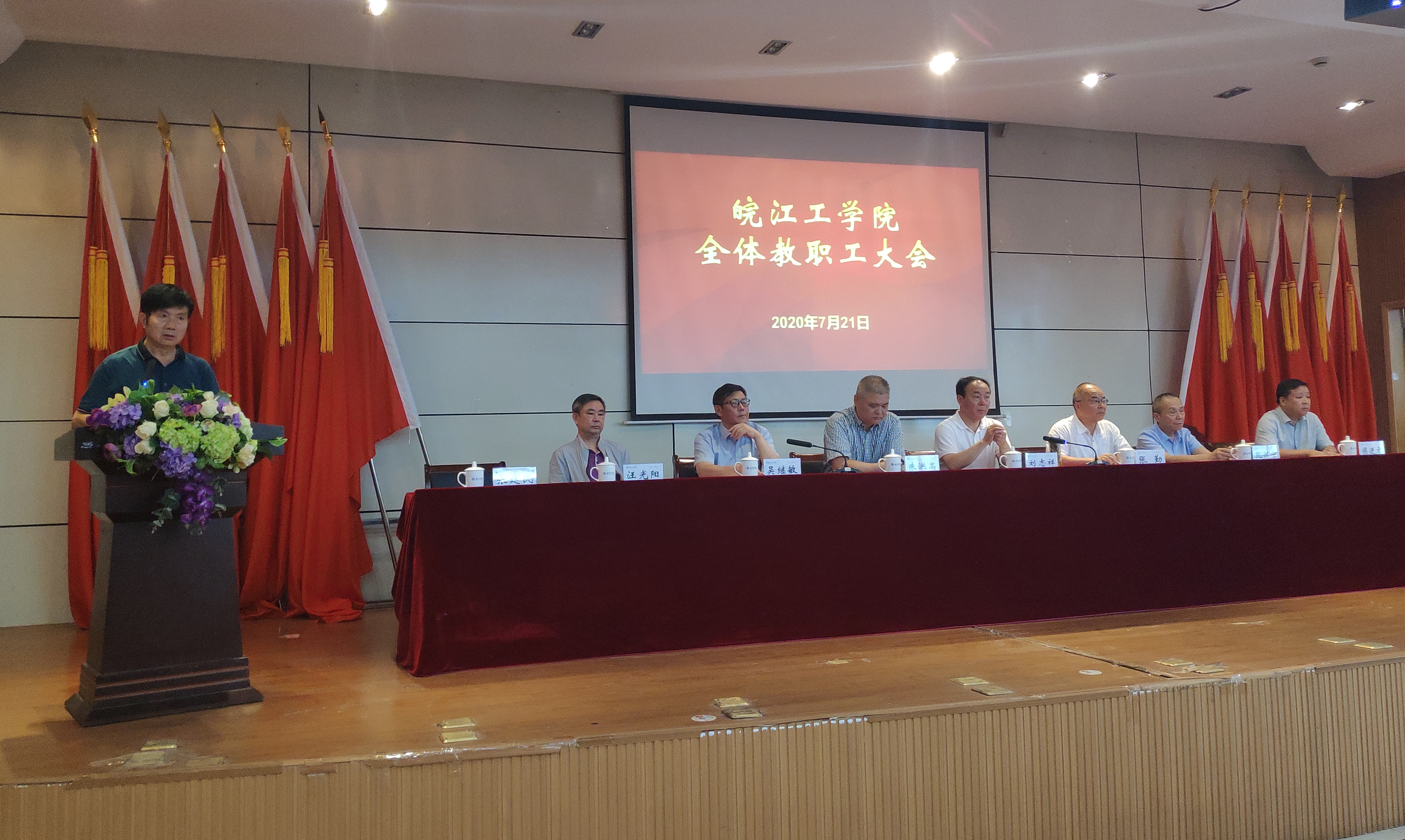 7月21日下午,beat365官网在图书馆报告厅召开全体教职工大会。董事长朱洪高,党委书记刘志祥,校长吴继敏等校领导出席会议,全体教职工参加会议。会议由副校长张建民主持。