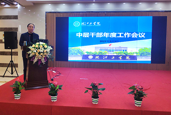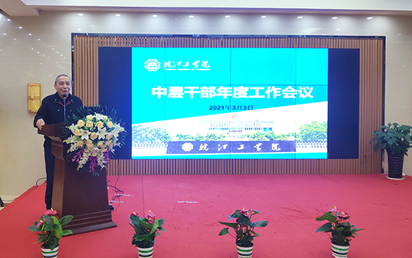 朱洪高发表讲话指出,2021年是建党一百周年,是国家“十四五”规划开局之年。本次会议全面布置了学校党委和行政工作,既是一次工作会,也是一次动员会,揭开了学校2021年各项工作的序幕。朱洪高要求,会议要扎扎实实搞好内涵建设、精益求精做好学校管理、认认真真抓好社会服务。2021年学校要深入贯彻习近平总书记关于教育的重要论述和全国全省教育大会精神,全面贯彻落实立德树人根本任务,以学校“十四五”规划开局为引领,以本科教学工作合格评估和内涵建设为抓手,实现学科专业布局优化,育人管理质量提升,特色发展优势突出。
