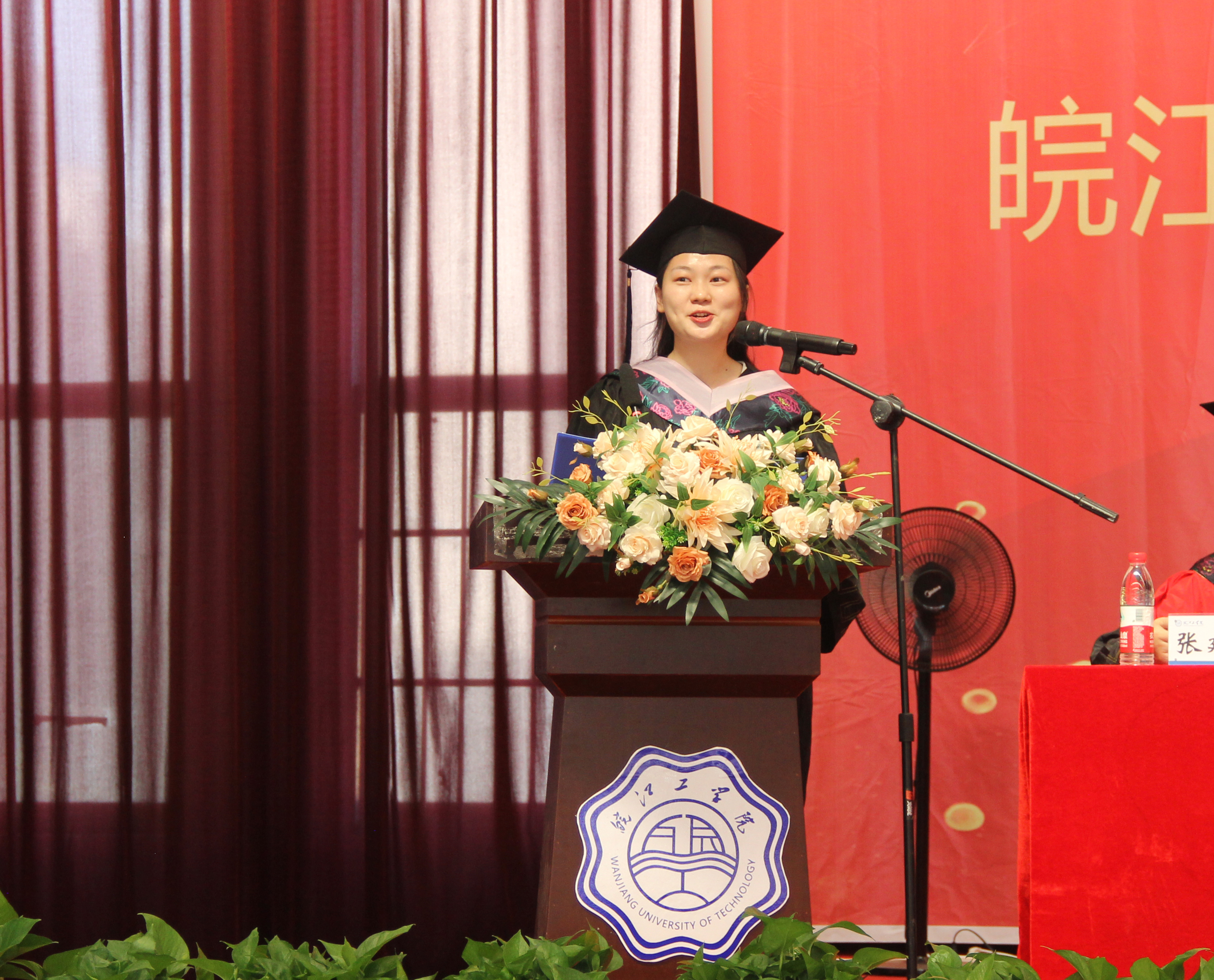 2017级会计专业汤怡然同学作为毕业生代表上台发言。她讲述了自己四年来在校学习成长的历程,并代表全体毕业生感谢学校提供的优质学习平台,感谢学校老师们为所有毕业生保驾护航,感谢辅导员不辞辛苦地指导,耐心细致地解疑答惑。