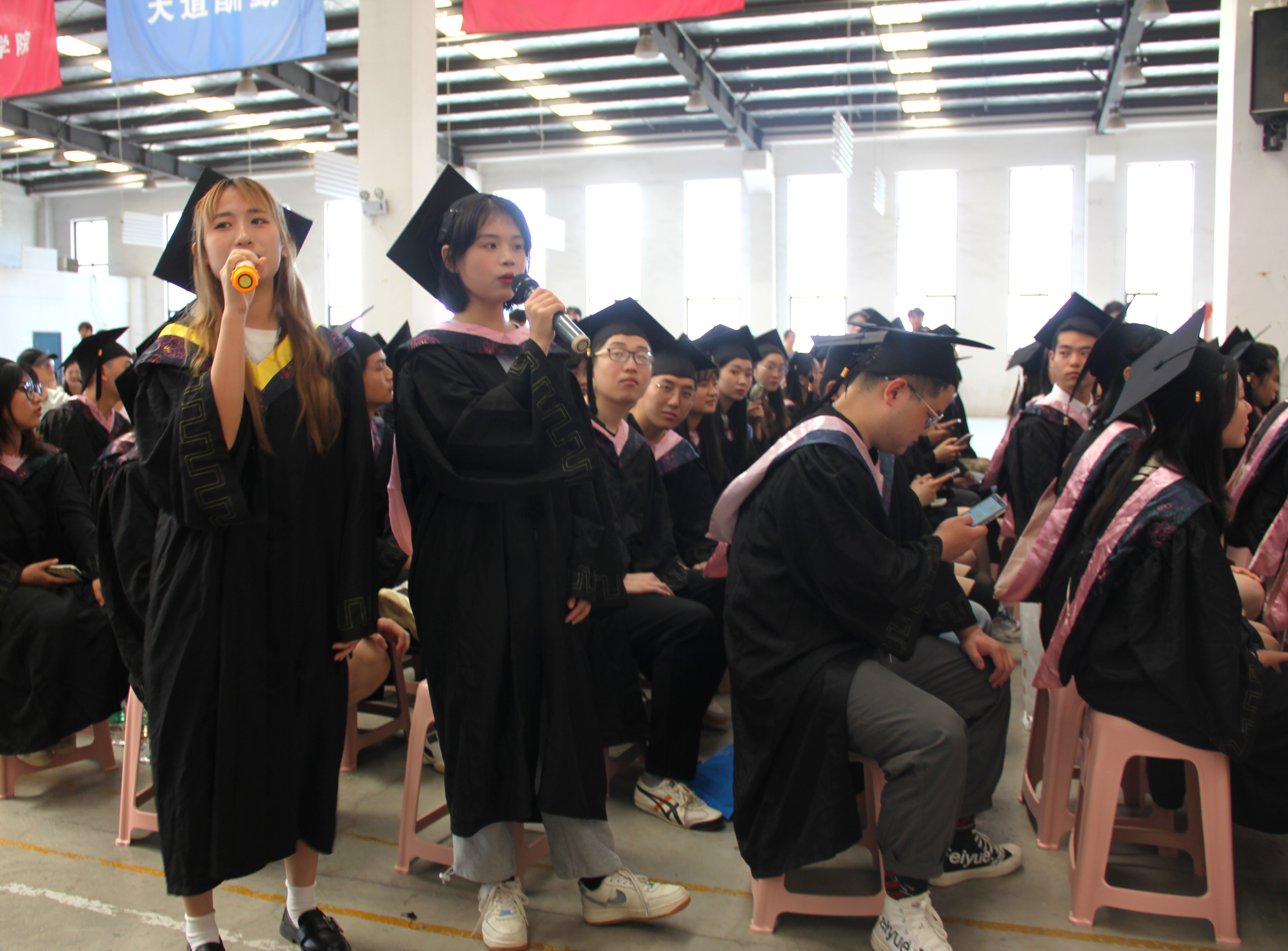 校友代表吕欢欢、夏正磊向毕业生们表示最衷心的祝贺,向母校和老师致以崇高敬意。他们与毕业生分享了自己在校求学的经历和多年工作生活的经历,鼓励毕业生们在这机会与挑战并存的大变局中不断学习,祝福毕业生们在未来的人生道路上事业有成,前程似锦,用青春书写人生的新篇章。