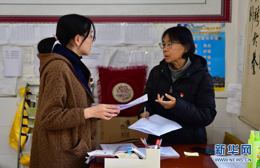张桂梅(右)和一名学校老师商议学校事务(12月1日摄)。新华社发(陈欣波 摄)