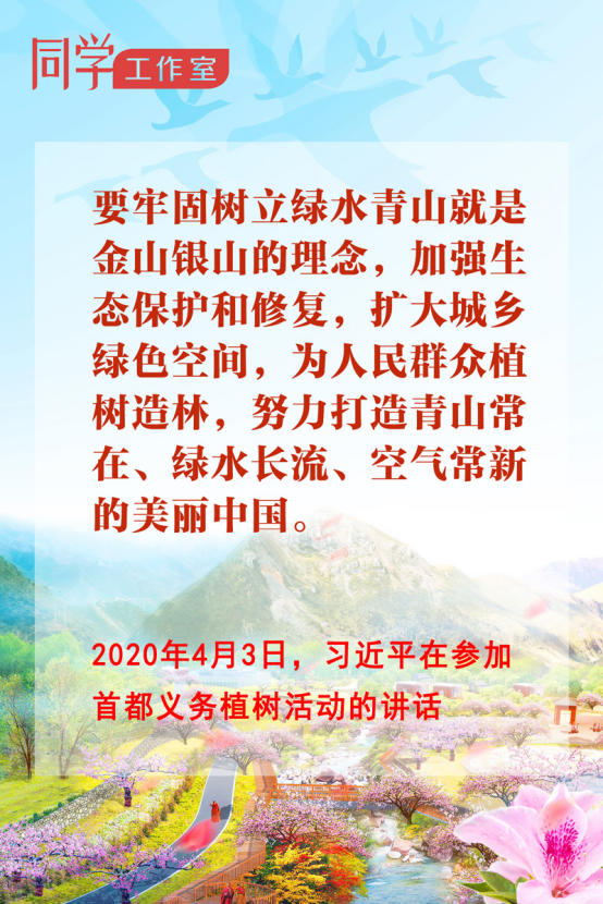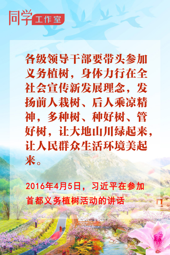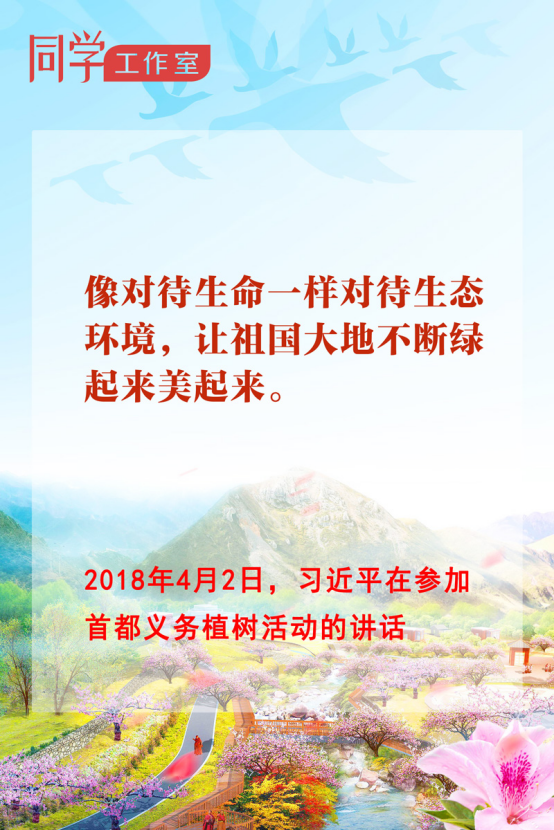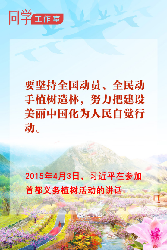 中华民族生生不息,生态环境要有保证。开展全民义务植树是推进国土绿化的有效途径,是传播生态文明理念的重要载体。3月12日是我国的植树节,让我们一起来回顾习近平总书记在历年植树节活动上的重要讲话,学习感受总书记的绿色情怀。
