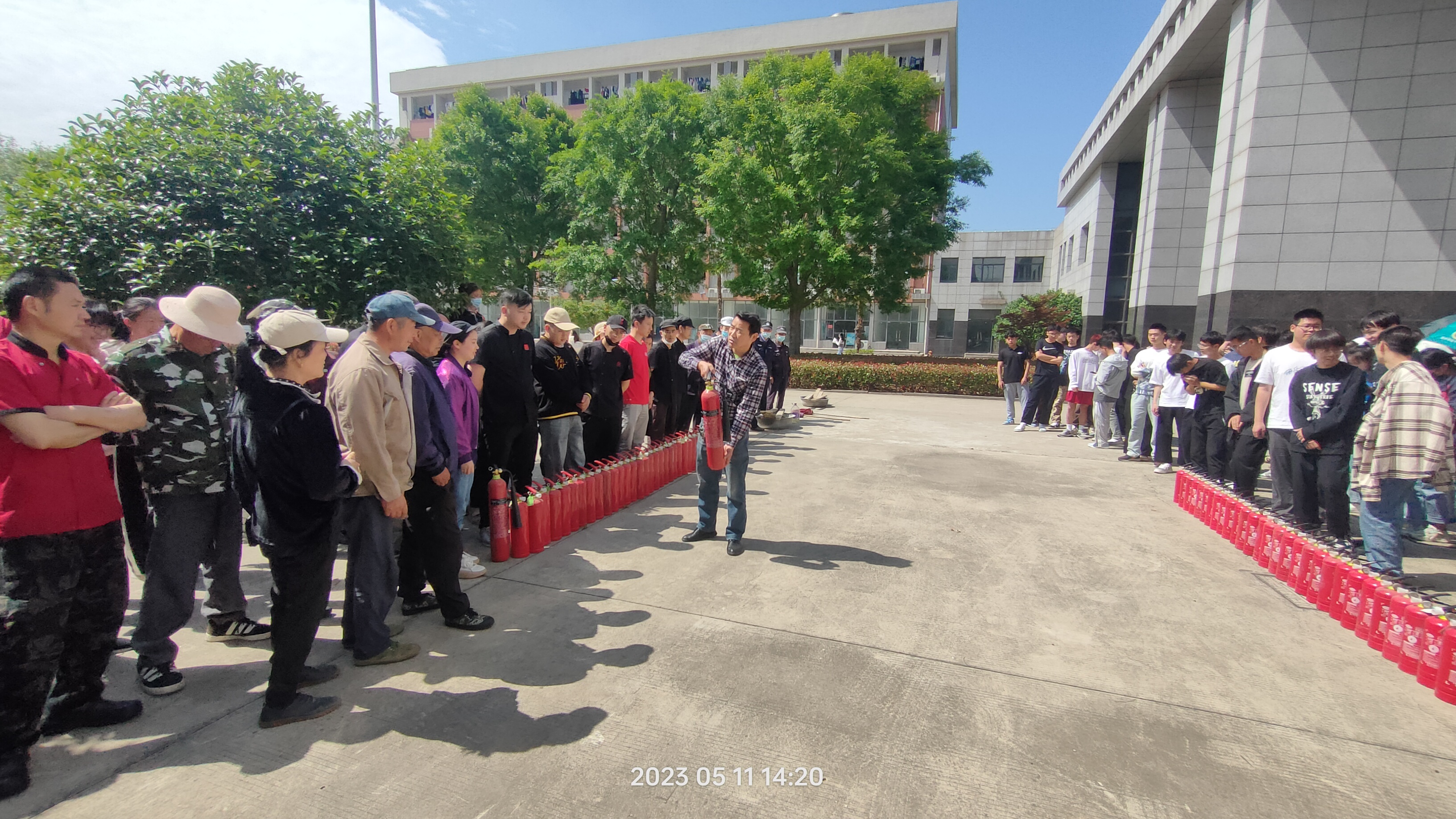 最后,在保卫科消防员的组织引导下,组织参训师生在模拟真实火场中进行了灭火体验,并在郑蒲港校区内进行了一次应急逃生演练,所有参训人员按照既定的疏散计划撤离,整个过程有序、迅速。