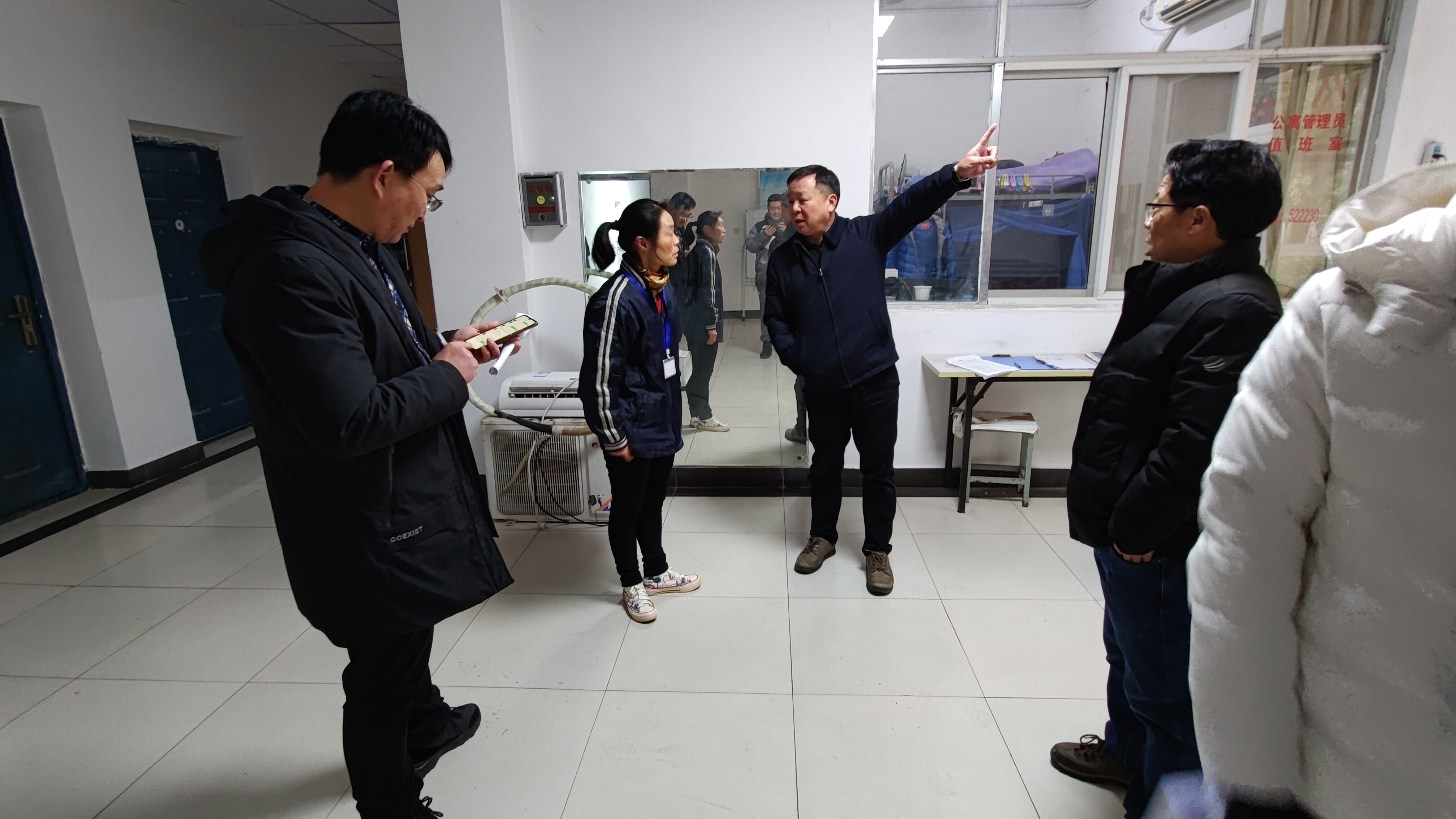 另一边,由侯进元带领学工部常务副部长江春明及各学院党总支副书记进入学生宿舍开展检查。检查中,侯进元仔细询问了宿管人员,详细了解宿管在工作中发现的安全问题,并先后对饮水机规范安装、空调外机检修、违规使用大功率电器、配电柜老旧等问题进行了现场督导整改。他指出,宿舍安全是校园安全工作的重要环节,各相关管理部门要时刻加强宿舍安全管理,健全规章制度,压紧压实工作责任;宿管员要切实担负起安全工作责任,把学生当做自己的孩子,强化宿舍内公共用水、用电的日常检查,及时排查安全隐患,保障学生安全。