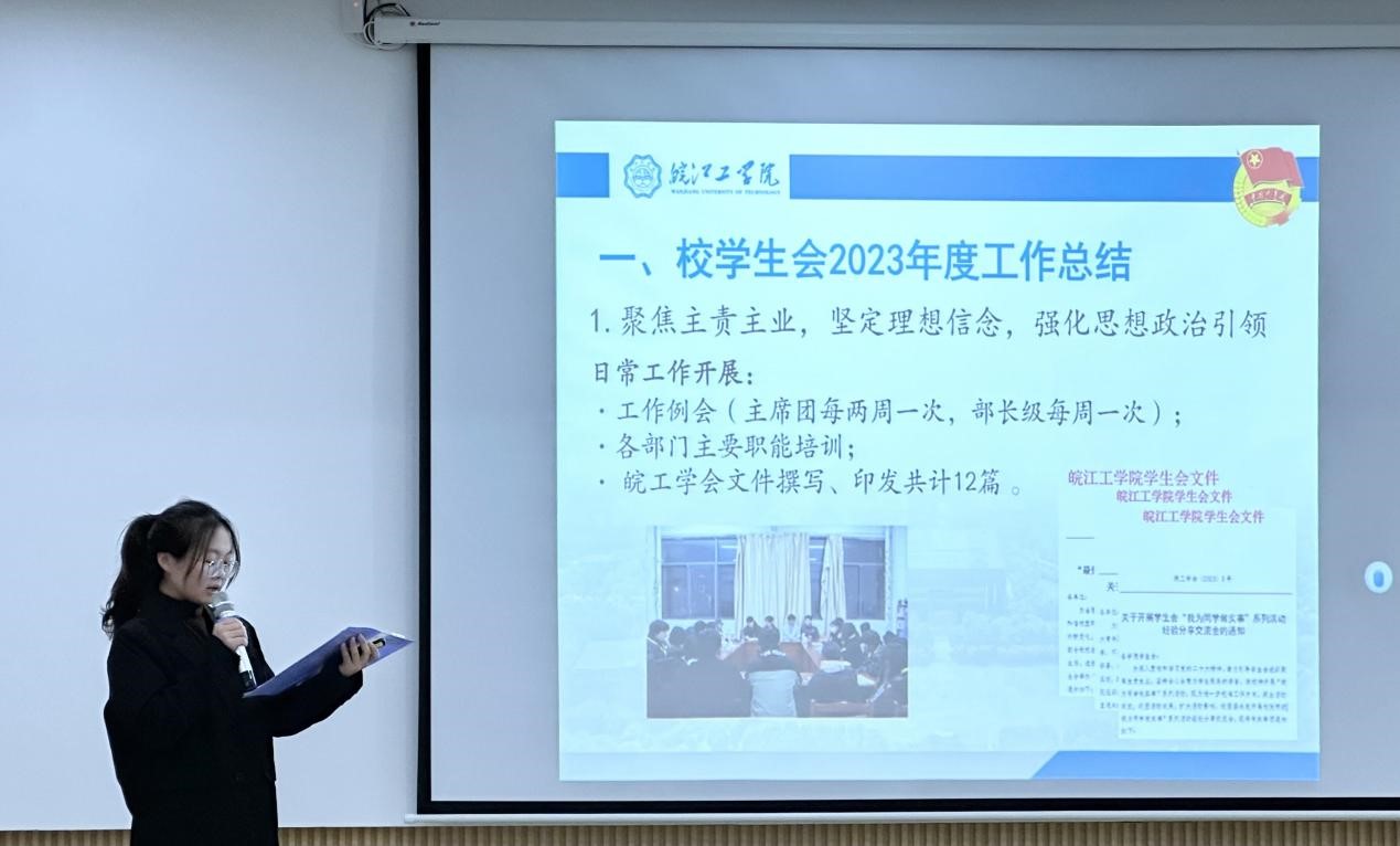 现场,各学生组织负责人围绕组织工作职能、2023年度工作开展情况、工作中的特色与亮点、2024年度工作规划等方面进行现场述职和交流展示。