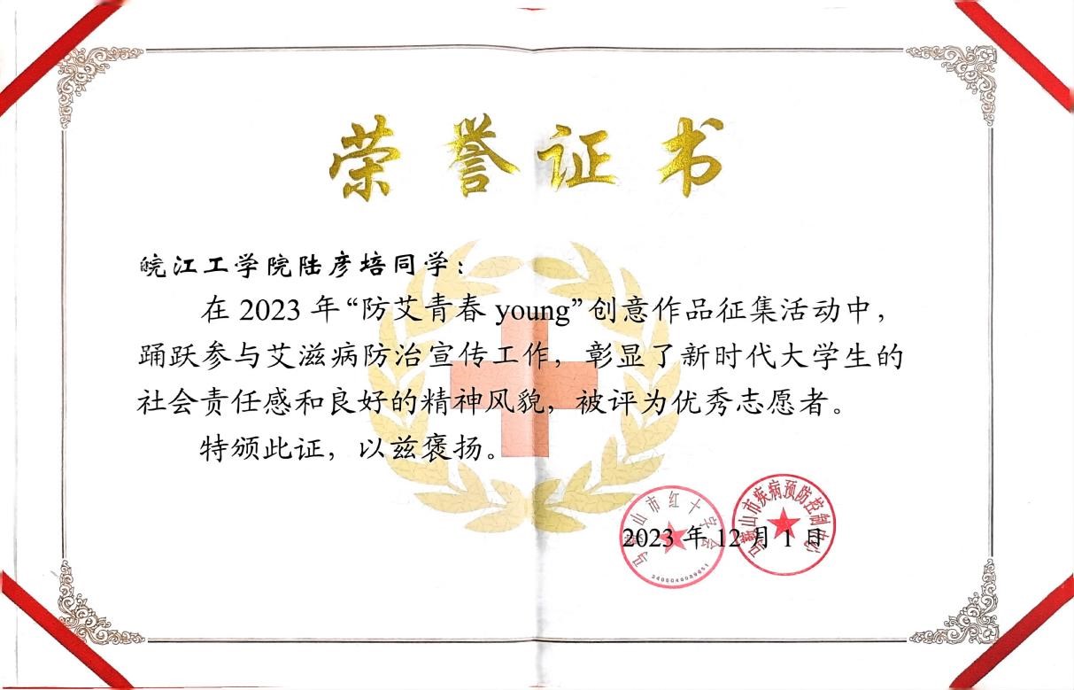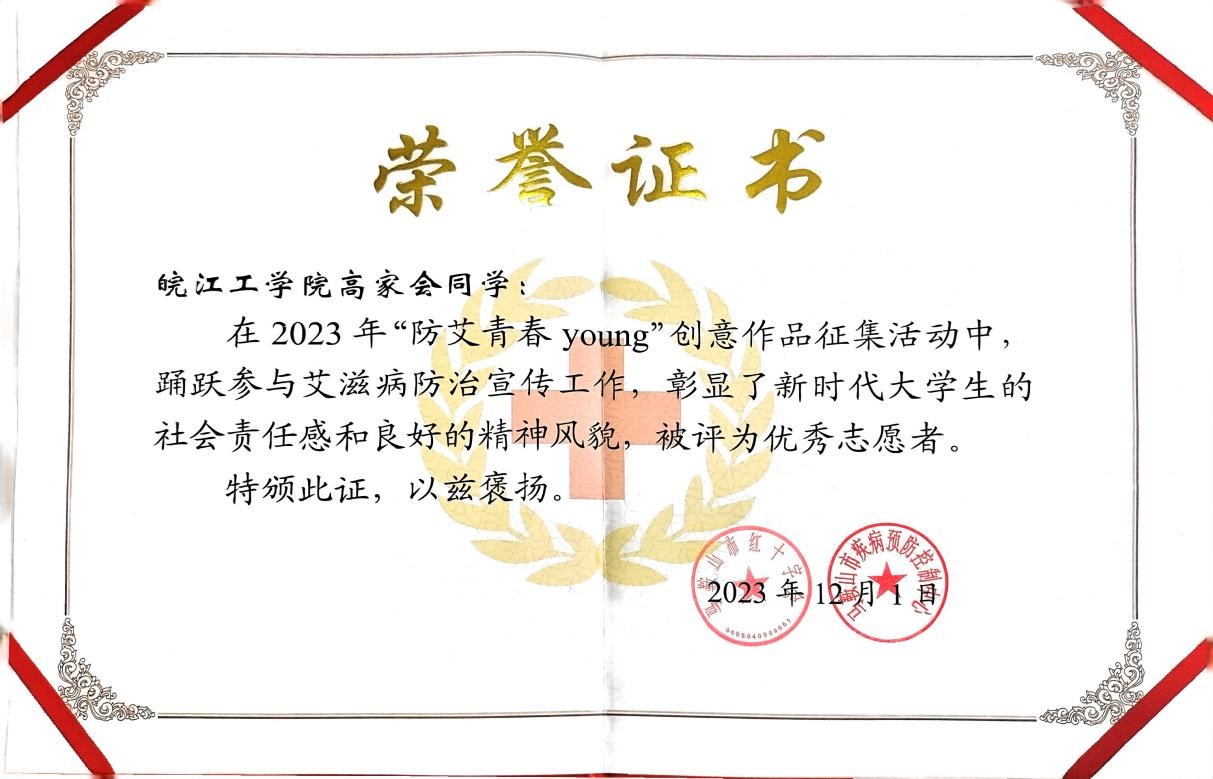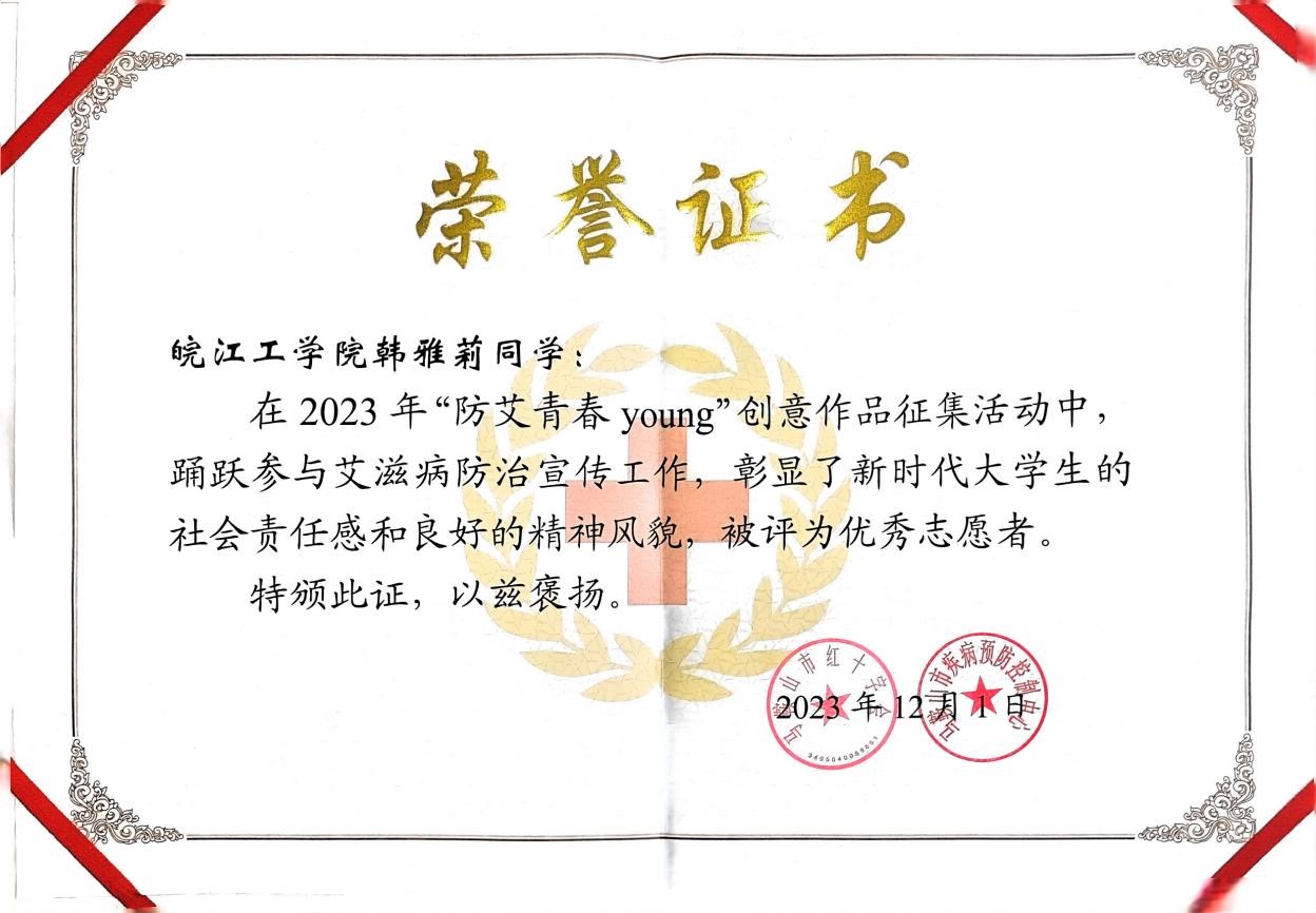 近日,在马鞍山市红十字会主办的“防艾青春young”创意作品征集活动中,beat365官网青年志愿者协会学生陈子良、高家会、张杰、陆彦培、韩雅莉被评为优秀志愿者。