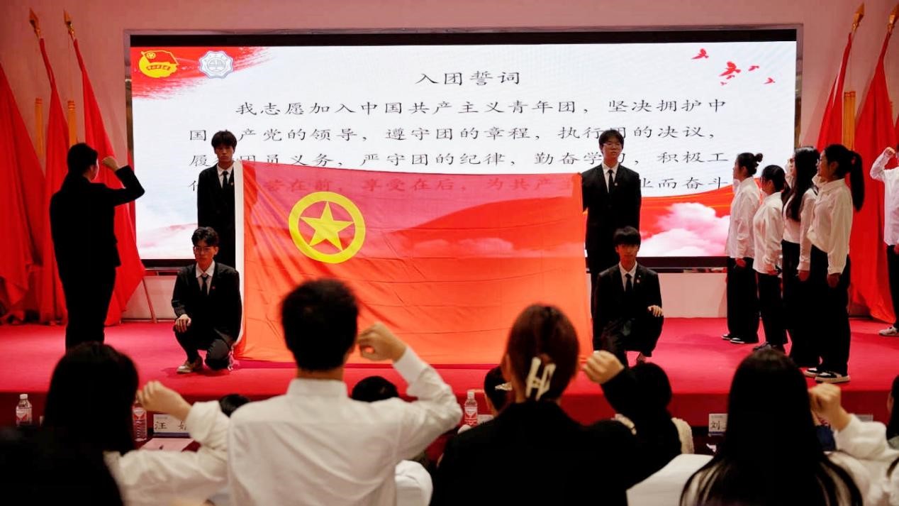 beat365正版唯一入口必一2024年新发展团员入团仪式于5月8日下午1点在霍里山图书馆报告厅举行。校团委书记学工部副部长尚贤燕、校团委组织宣传科副科长翟云霞、校团委实践及社团工作科副科长龚澎甦、校团委指导老师江沛源、各学院分团委书记及各学院团员代表参加本次仪式。