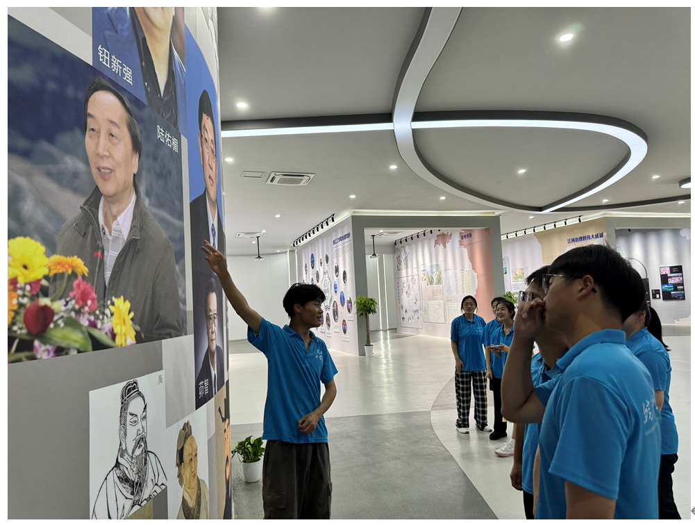 随后讲解员李玉、沈鑫越、周晓婷、石鑫宇、唐嘉唯分别介绍了水情教育基地的五大展区和六大板块,以及各功能区的内容,向大家描绘了我国水情发展的整体脉络及宏伟蓝图。