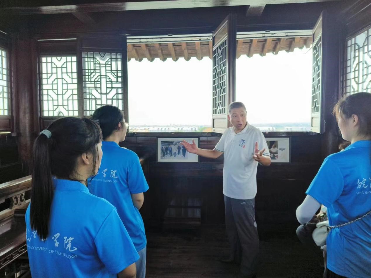 水阳镇作为一个千年古镇历史悠久,源远流长。实践团队在刘业俊老师带领下参观了水阳印象馆,在印象馆里通过老师的讲解和实地的参观让实践团队仿若身临其境置身于这座千年古镇中。墙上的一帧帧一幕幕都记录着水阳的发展历史,让实践团队更加了解这座江南水乡千年古镇。说到千年古镇就不得不提当地的标志性建筑,说到水阳的标志性建筑就不得不提梓潼阁。梓潼阁位于水阳镇上街头,是该镇历史悠久、文化底蕴深厚的地标性建筑。梓潼阁在水阳江边。梓潼阁是木制的三层楼,屋檐四角吊着风铃,风吹的铃档声及水阳江的浪涛声交织在一起,让人暇想联翩。由刘业俊老师带实践团队参观梓潼阁,介绍阁内陈设并带实践团队体验登高望远,一览美丽水阳江畔。
