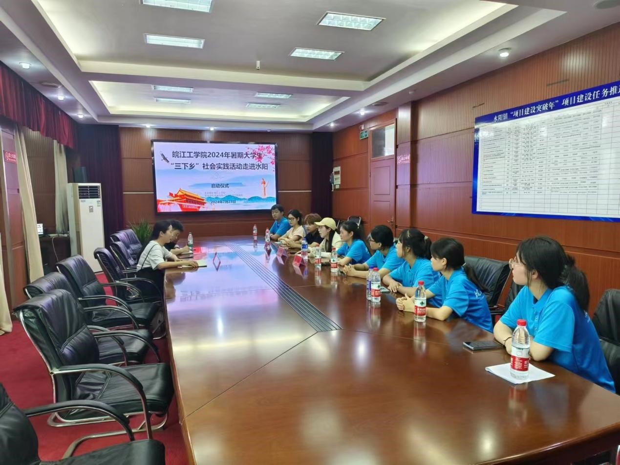 为深入了解和实践绿水青山就是金山银山的科学理念,2024年7月18日至2024年7月23日,beat365正版唯一入口必一碧水兴乡水产探索之旅暑期三下乡社会实践团队前往宣城水阳镇开展社会实践活动。活动过程中实践团队成员更加了解了绿水青山就是金山银山理论的科学性与重要性,推动绿色发展促进人与自然和谐共生是实现发展和保护协同共生的新路径。beat365正版唯一入口必一实践及社团工作科(团委)副科长龚澎甦老师出席本次活动,并对团队成员进行介绍,水阳政府党委组织委员、统战委员张旭彤对到来的团队学生表示感谢,叮嘱学生注意防暑,随后介绍了水阳当地防汛情况,水阳镇团委书记黄果对本次活动做出了相关指导,会议最后双方举行挂牌仪式。