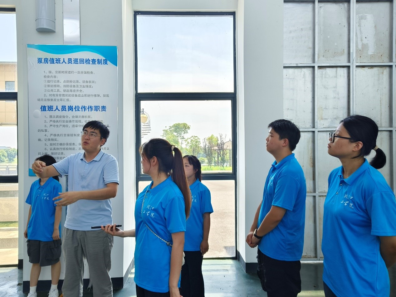 受特殊地理位置影响,水阳镇在遭遇强降雨时,全境极易发生内涝,及时排出涝水显得尤为重要。此次维修保养工作,涵盖人民站、澄沟站、汤湾站、丁湾站等9座排涝泵站的电机、水泵、启闭机、电气设备等设施,重点对各排涝泵站进行全面系统检查,并根据发现问题有针对性地制定维修保养计划,确保各排涝泵站正常运行。水阳镇还曾荣获“安徽省基层防汛抗旱应急能力标准化建设试点”。防汛相关负责人向实践团队介绍启闭机及使用方法并讲解相关防汛知识和防汛点。防汛相关负责人还带实践团队参观凤联站,介绍站内相关设施让实践团队通过切身的感受更加了解水阳的防汛工作。