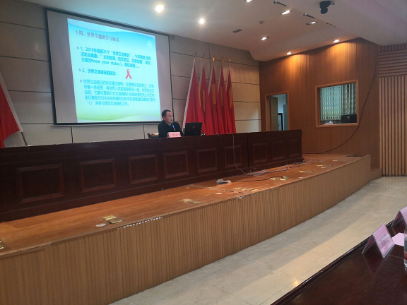 马鞍山市疾控中心艾防科科长朱宏斌为大家讲解了有关艾滋病防治方面的知识,给同学们仔细讲解艾滋病的致病原理、发病状况、传播途径、防治措施等,让同学们掌握了预防传染病的基本知识,深刻了解到艾滋病的危害。疾控中心结防科科长章江为大家讲解了关于肺结核疾病防治方面的知识,他通过播放两个科普短片让大家更加直观的了解到有关肺结核方面的知识。讲座结束后,专家帮同学们解答疑惑的同时还提供给同学们无偿测量血压的机会,让同学们能够进一步了解自己的身体健康状况。