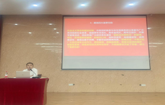 5月25日下午14:30,马鞍山市团市委副书记胡宏扬以“深入学习贯彻习近平总书记在庆祝中国共产主义青年团成立100周年大会上的讲话精神”为主题,于郑蒲港校区报告厅为校区青马班成员开讲。胡书记带领全体学员全面回顾了100年来共青团坚定不移听党话、跟党走的青春历程,充分肯定了共青团在党的领导下、团结带领一代代团员青年为实现中华民族伟大复兴中国梦所做出的重要贡献、深刻船名了共青团和青年工作的历史经验。同时,他结合自身学习及工作履历,提出新时代大学生要不断接受锤炼锻造,争做“自知、自立、自信、自强、自省”的清澈的纯粹的青年!