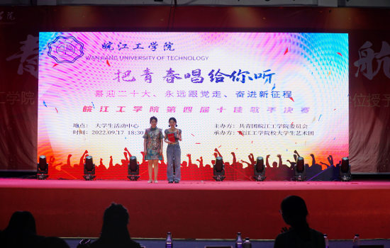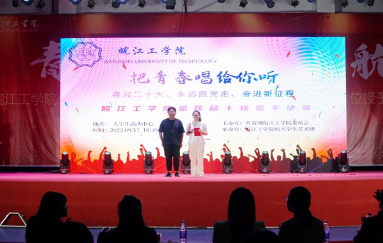 为繁荣校园文化生活,努力营造积极向上、健康文明的校园文化气氛,为学生提供展示自己才华的舞台,9月17日晚,由校团委主办,校大艺团承办的“把青春唱给你听”校园十佳歌手大赛在大学生活动中心成功举办。马鞍山琴屿音乐工作室老师王婉月、水利工程学院院长助理张鹏、土木工程学院分团委书记王露仪、机械工程学院分团委书记汪娟、财经学院分团委书记刘玉婕、团委指导老师龚澎甦作为嘉宾莅临现场。