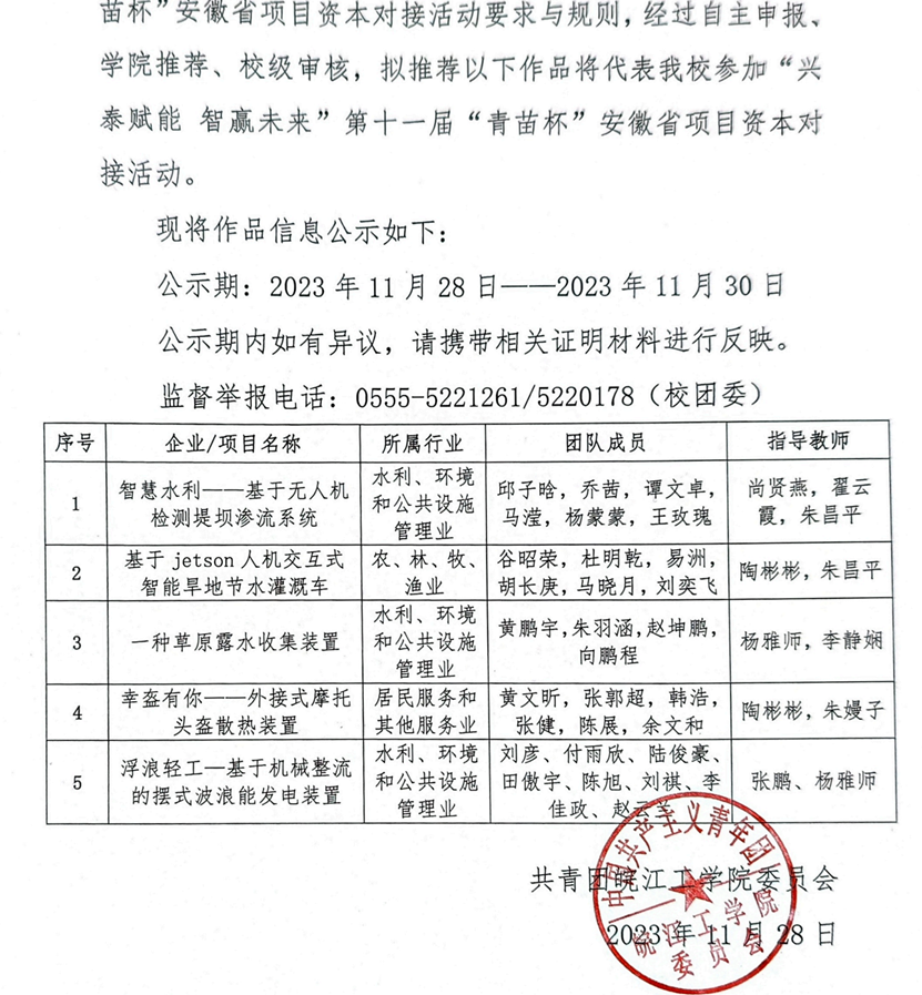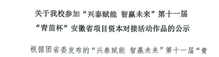 关于beat365官网参加“兴泰赋能智赢未来”第十一届“青苗杯”安徽省项目资本对接活动作品的公示 关于beat365官网参加“兴泰赋能智赢未来”第十一届“青苗杯”安徽省项目资本对接活动作品的公示