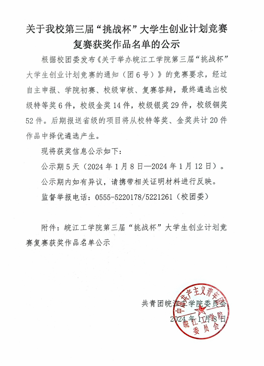 关于beat365官网第三届“挑战杯”大学生创业计划竞赛复赛获奖作品名单的公示