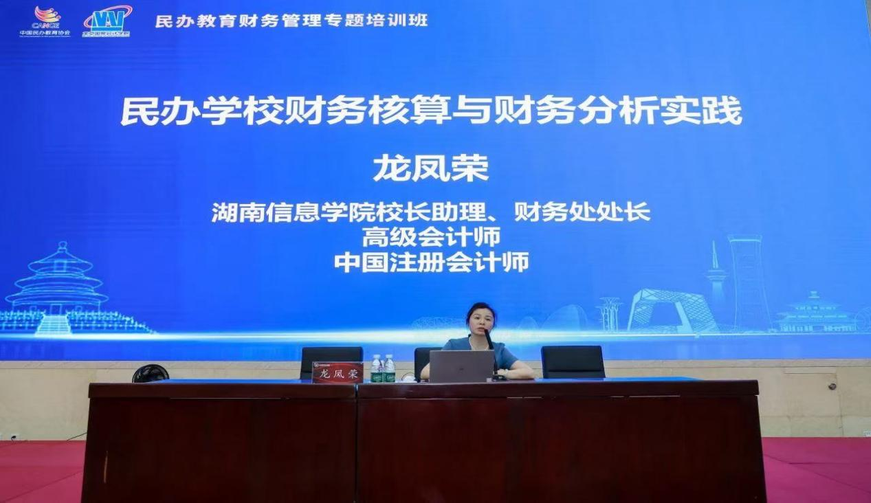 民办教育年检财务专家、中国注册会计师、中国注册税务师叶龙和高级会计师、中国注册会计师,湖南信息学院校长助理、财务处处长龙凤荣,分别围绕“民办学校财务规范与年检问题分析”和“民办学校财务核算与财务分析”两个专题作报告。他们的报告聚焦一线实践,以丰富的案例和翔实的数据展现出民办教育财务管理中的共性问题及好的经验做法。
