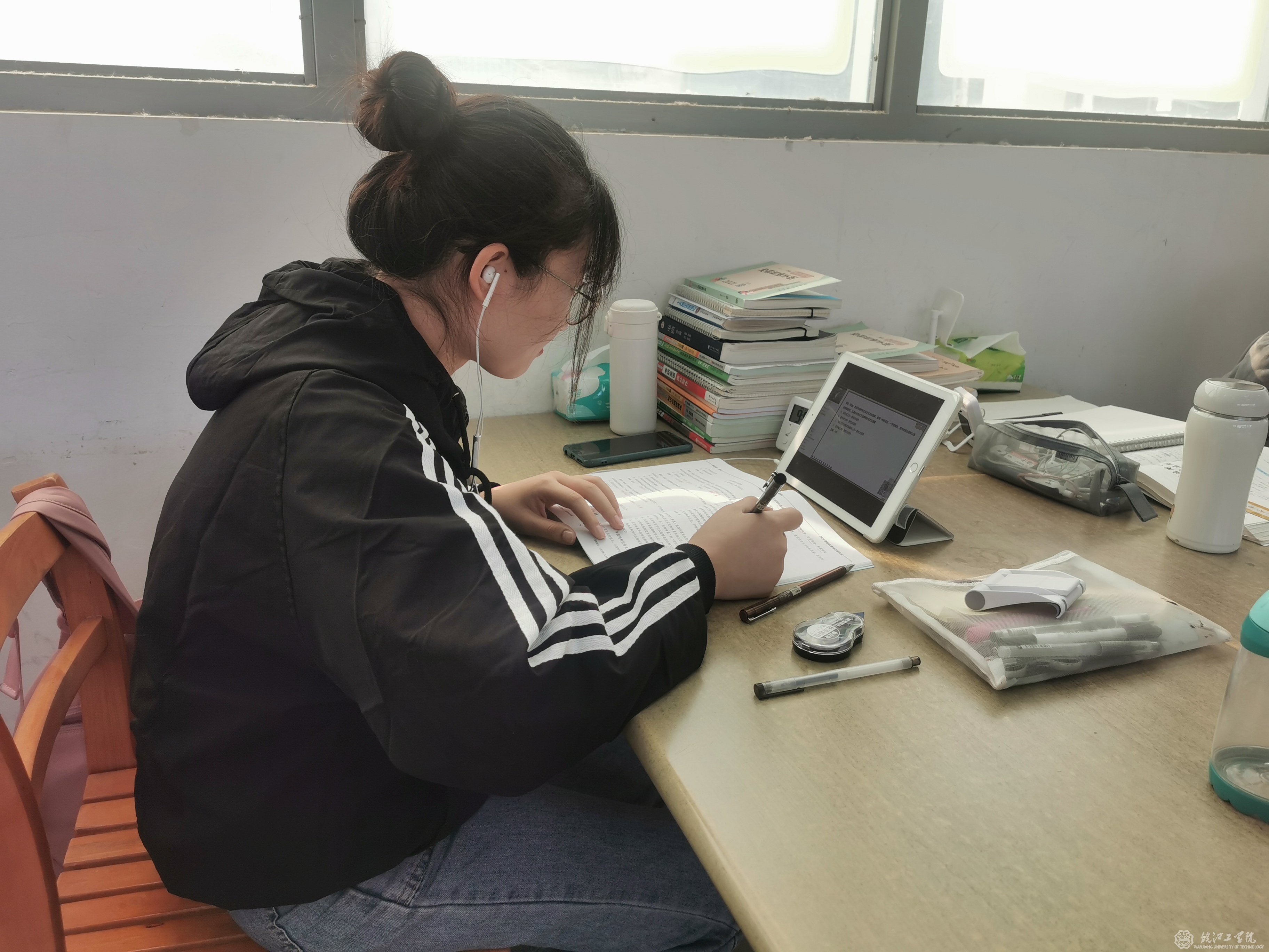 早上6点,beat365正版唯一入口必一图书馆的门口已经有学生等候开馆。一名大四考研女同学表示,她每天都坚持来图书馆学习,早上来迟了就没座位了。走进图书馆,每一个自习室都坐满了人,甚至在走廊和墙角都能发现努力学习的学生。