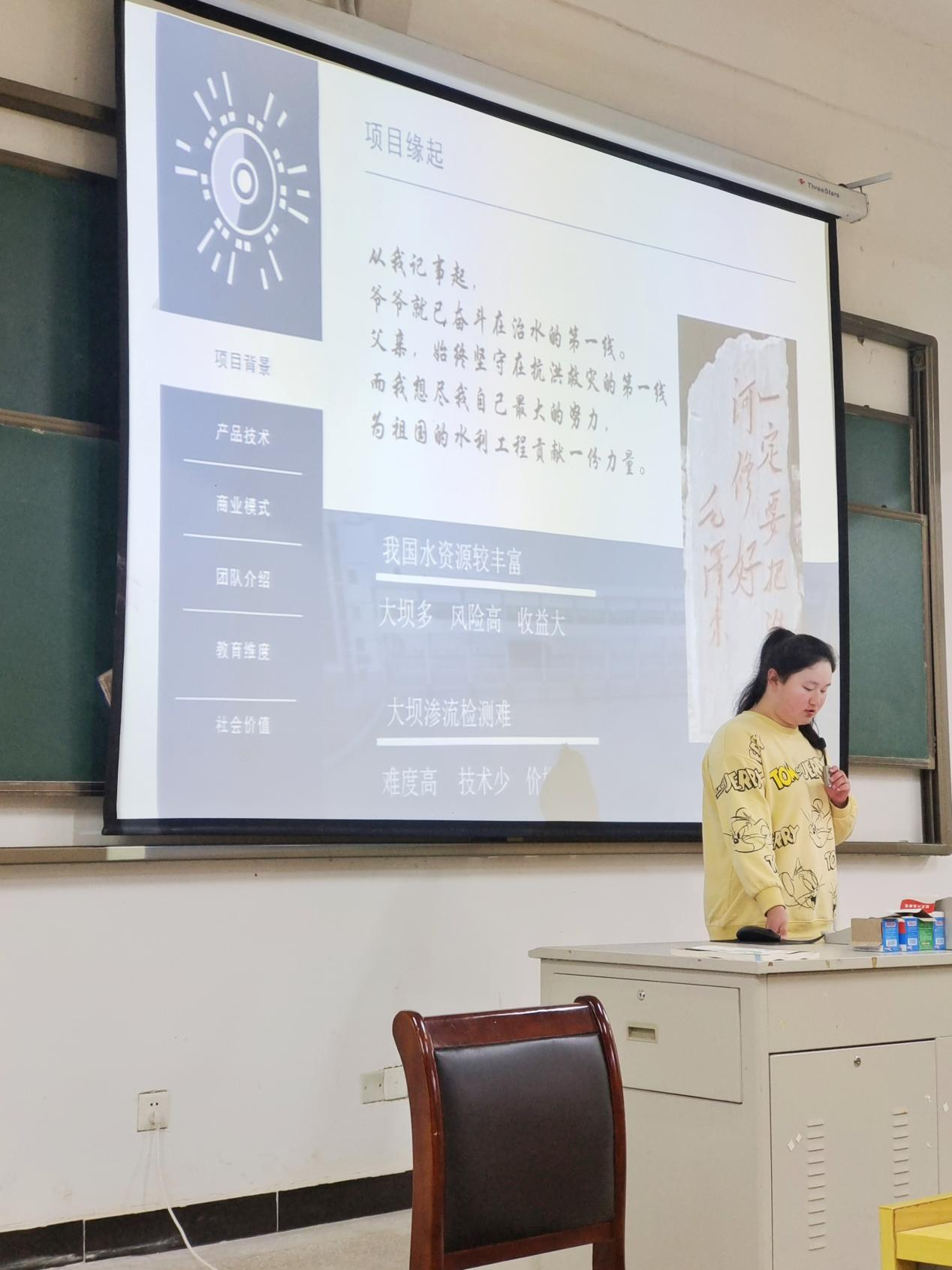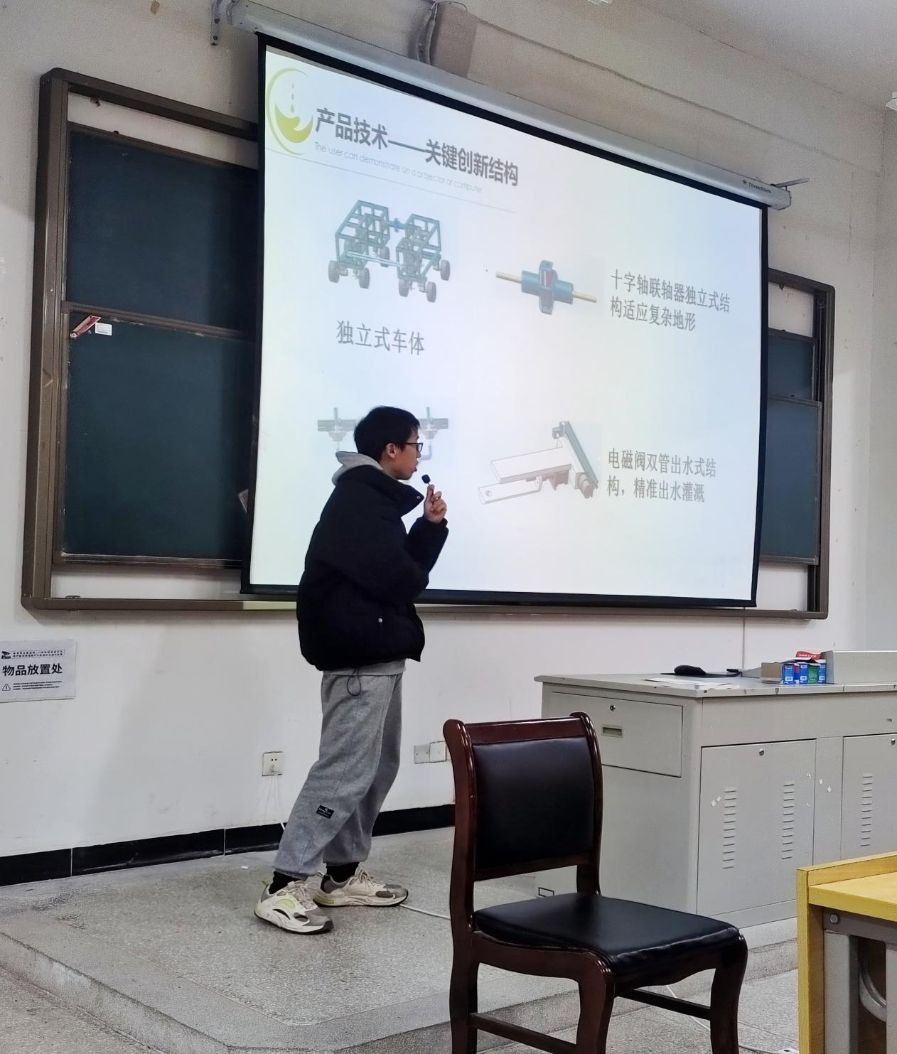 四位主讲同学分别介绍了他们在2023年挑战杯校级选拔赛中荣获佳绩的创新创业项目,他们主持的“葆水山青-一种适用于全地形作业雨水利用系统、基于无人机检测大坝背面混凝土表面渗流系统、智能灌溉车、一种具有防控疫情的机场无人运输小车”四个项目创意均系学生自主提出,实物作品均由学生自主完成,系列知识产权均为学生自主申请,基于学科赛事推广知识产权的工作均是学生自主开展。四位同学现场展示了自己研发的知识产权实物作品,并将自己的参赛PPT、知识产权申报资料无私留给了与会同学。为了使同学们在撰写专利遇到困难时能得到有效帮助,四位主讲同学均留下了自己团队的微信号,并热忱欢迎同学们加入团队。
