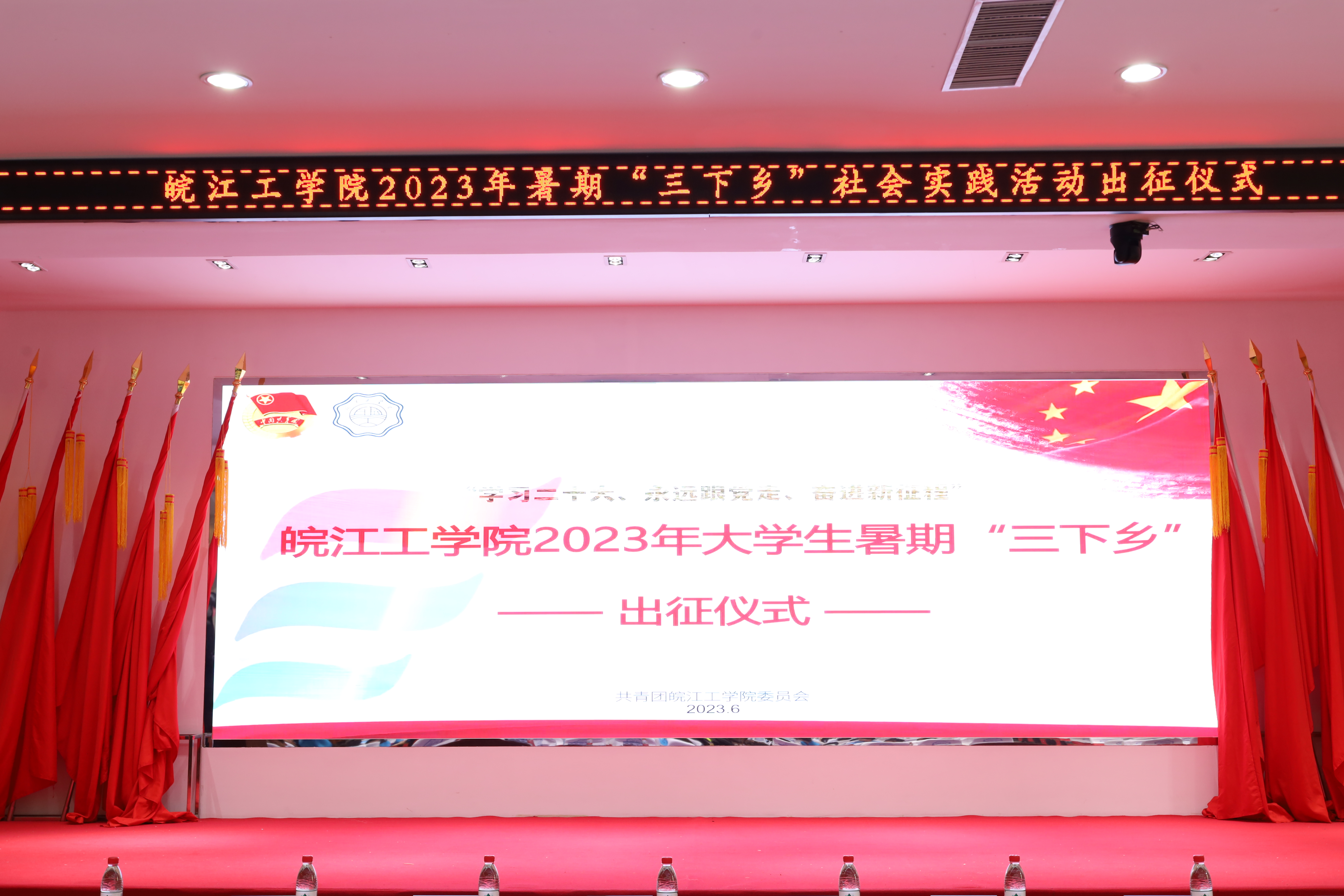 为深入学习贯彻习近平新时代中国特色社会主义思想,深入学习贯彻习近平总书记关于青年工作的重要思想,坚持“受教育、长才干、做贡献”的宗旨,6月15日,在霍里山校区图书馆报告厅举行“学习二十大,永远跟党走,奋进新征程”2023年暑期“三下乡”社会实践活动出征仪式。副校长侯进元,学生工作部常务副部长江春明,教务部副部长葛文生,校团委书记、学生工作部副部长尚贤燕,管理学院党总支副书记冯康,艺术设计学院党总支副书记程楠楠,财经学院学工办主任谢清雅,电气信息工程学院学工办副主任李婷,各学院分团委书记以及实践团队成员200余人参加了本次仪式。