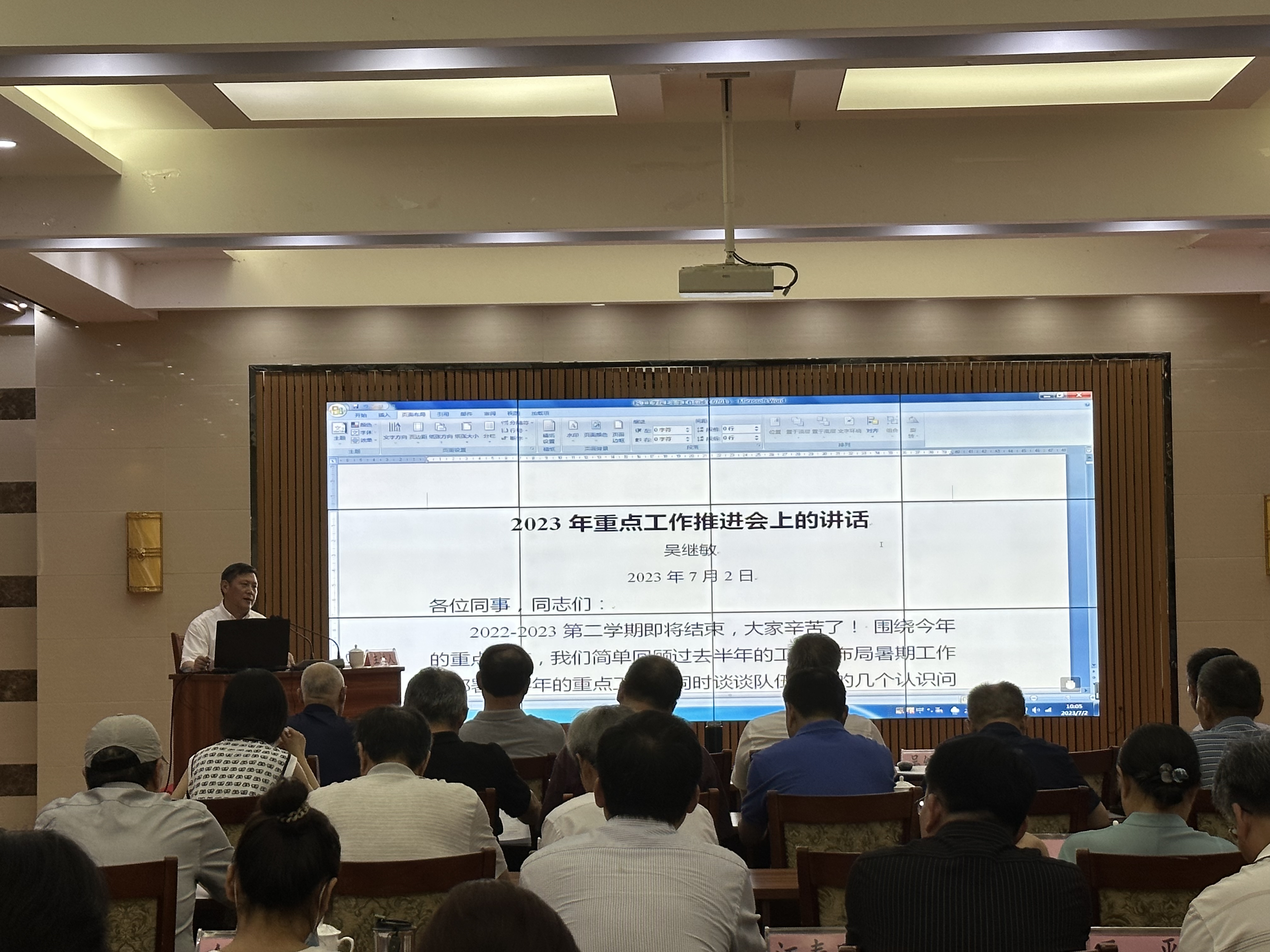 党委副书记、校长吴继敏作专题讲话,他首先回顾了过去半年的工作,并对暑期工作和下半年的重点工作进行了详细部署。