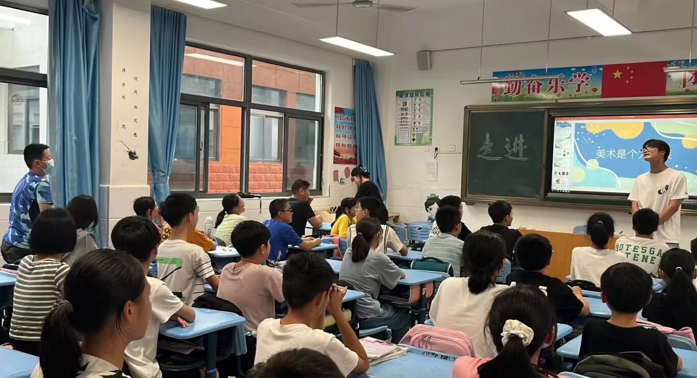 美术理论知识是美术学习的基础。社会实践第三日,实践团队以“走进美术”为题,对六年级学生传授美术理论知识。帮助学生们了解美术、美学原理,提高对美的感知。课堂中,很多孩子敢于积极提出自己的问题,实践团队成员孙先超作为此次课堂的主讲老师,对孩子们的问题都一一作出解答,并提出倡议:美术与我们的生活息息相关,大家要注重美学艺术的培养和发展。