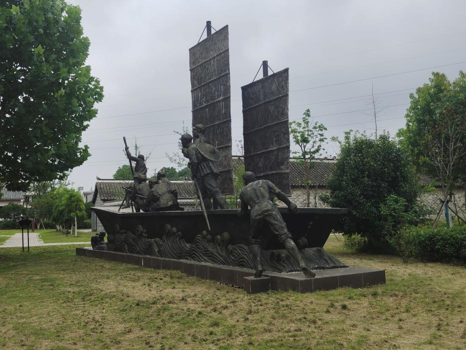 在参观完渡江战役总前委旧址后,团队成员由此向南出发来到了渡江战役纪念馆,馆内陈列的各种雕塑很是壮观:无声的雕塑诉说着英雄本色,有声的电影默默向我们展示英雄精神。