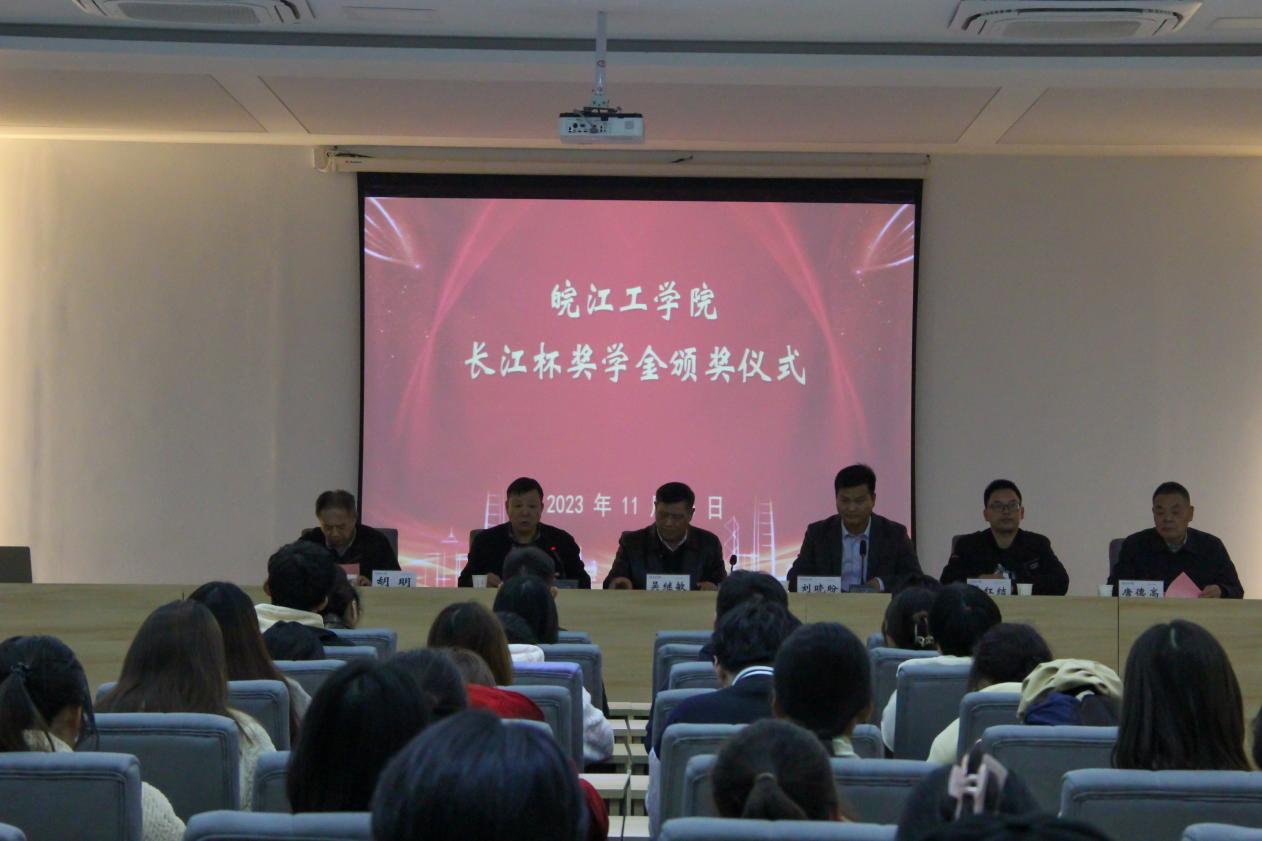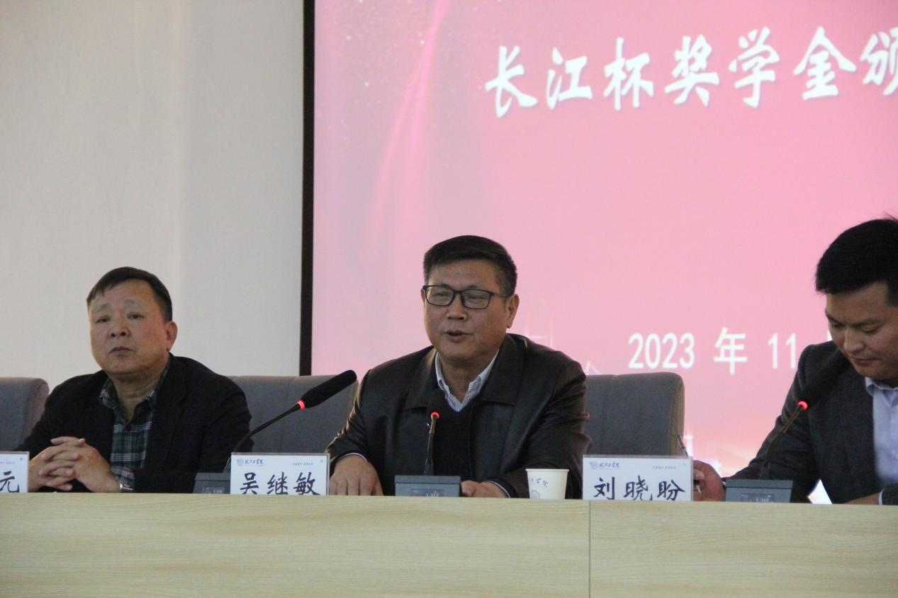 11月15日下午,2023-2024学年beat365正版唯一入口必一 “长江杯奖学金”颁奖典礼在新水利土木楼西301会议室隆重举行。beat365正版唯一入口必一党委副书记、校长吴继敏,副校长侯进元、水利工程学院院长胡明、土木工程学院院长唐德高和安徽省长江河道工程有限责任公司总经理刘晓盼、总经理助理董红结参加仪式。beat365官网学生工作部常务副部长江春明、副部长汪朱华及水利工程学院、土木工程学院的相关领导、辅导员出席此次仪式。仪式由副校长侯进元主持。