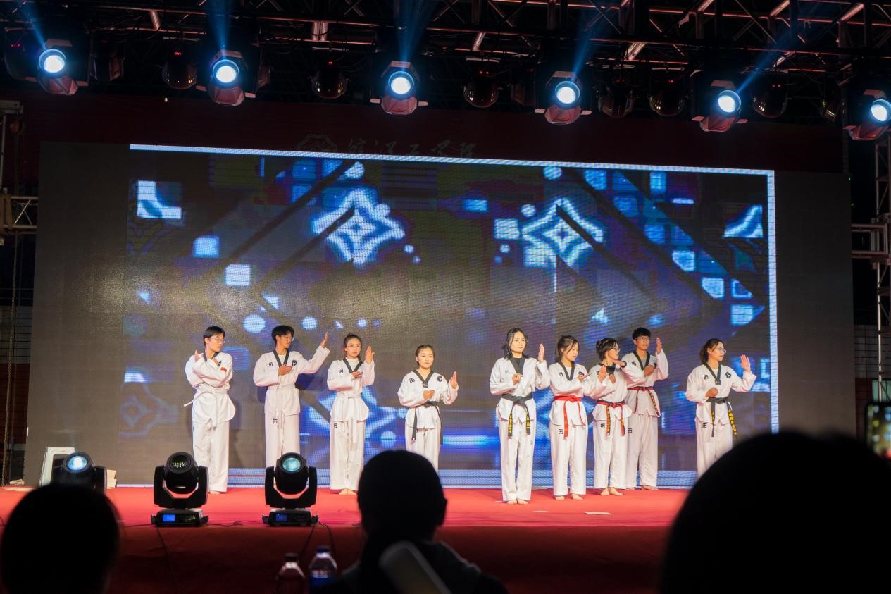 激情四射的舞蹈《power》、《queen card》、《fancy》引燃全场,展现新时代青年的生机与活力;热情洋溢的朗诵《月光下的中国》诉说着我们对祖国最真挚的爱;倾情演唱的歌曲《我乘着风飞过来》、《晴天》、《明天你好+玫瑰少年》震撼全场。除此以外,跆拳道节目《危险,小心旋风》、气球节目《百变马丁》演绎出青年学子的意气轩昂,诠释出青春的别样定义;乐器节目《神灵雨》传递中国民乐的雅韵;话剧《烈火英雄》展现新时代奋战在基层一线的青年用勇气铸就民族的辉煌。现场欢歌如潮、笑靥如花,晚会最终在23级新生辅导员们的歌舞节目《teddy bear+你要跳舞吗》中落下帷幕。