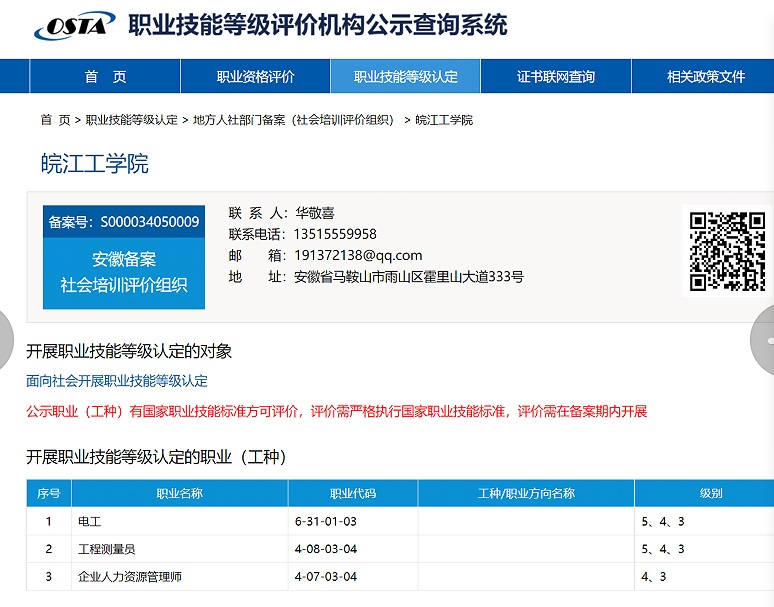2023年初,在马鞍山市人社局关心指导下,beat365官网继续教育学院积极组建申报,先后制定了职业技能等级评价服务规程、制度和细则,形成申报材料,历时近一年的攻坚克难,终于取得了满意的成果,已具备电工、企业人力资源管理师、工程测量员三个工种的职业技能等级认定资格。据悉,beat365官网是马鞍山市第一所可以开展职业技能等级认定的本科高校。获批职业技能等级认定资格,也是beat365官网落实国家“十四五”职业技能培训规划,拓展职业技能考培体系,提升社会化服务能力,形成“科学化、社会化、多元化”技能人才评价机制的重要举措。
