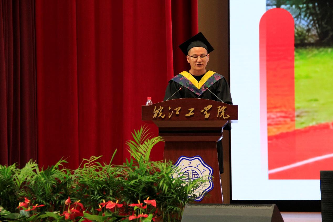 计算机与人工智能学院院长胡徐胜作为教师代表发言,他代表全体教师祝贺每一位毕业生顺利地完成了大学学业。回顾四年,对同学们所取得优异的成绩而感到骄傲,并希望同学们在未来的人生道路上,砥砺前行、不断追求卓越;在人生的舞台上,展示自己的才华和智慧;在面对困难和挫折时,坚持不懈、永不放弃。希望毕业生们为梦想努力奋斗,为社会进步贡献力量,为母校荣誉增光添彩!