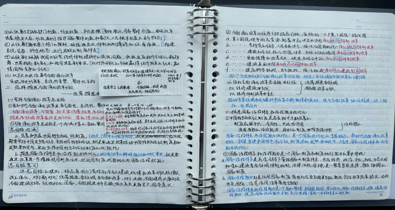 为了发掘和展示同学们在学习、思考过程中的精彩瞬间和独特见解,培养大学生的学习观念和思维能力,激发同学们的学习热情,营造良好的备考氛围,2024年4月-5月学校向1-3年级的学生开展以“笔”墨芬芳,有“记”可循为主题的笔记征集活动。在本次活动中,经过层层选拔,22级测绘工程专业的许学赟同学凭借清晰有序、系统条理、字迹清秀的笔记荣获本次活动的一等奖。