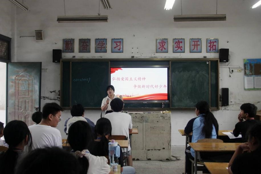 7月12日,实践队指导老师吴慧慧以“弘扬爱国主义精神,争做新时代好少年”为题为大中小不同学段的学生上了一堂思政课。吴慧慧从爱国主义的科学内涵说起,她表示,要始终引导和帮助广大青少年学生始终热爱祖国,以实际行动报效国家的志向。同时,实践队队员孟子森带领学生共同歌唱红色经典歌曲《共产主义接班人》,一起用嘹亮的歌声表达对共产主义的信仰和对祖国的热爱。歌声回荡在教室内,激励着每位青少年要努力为实现中华民族伟大复兴的中国梦而奋斗。