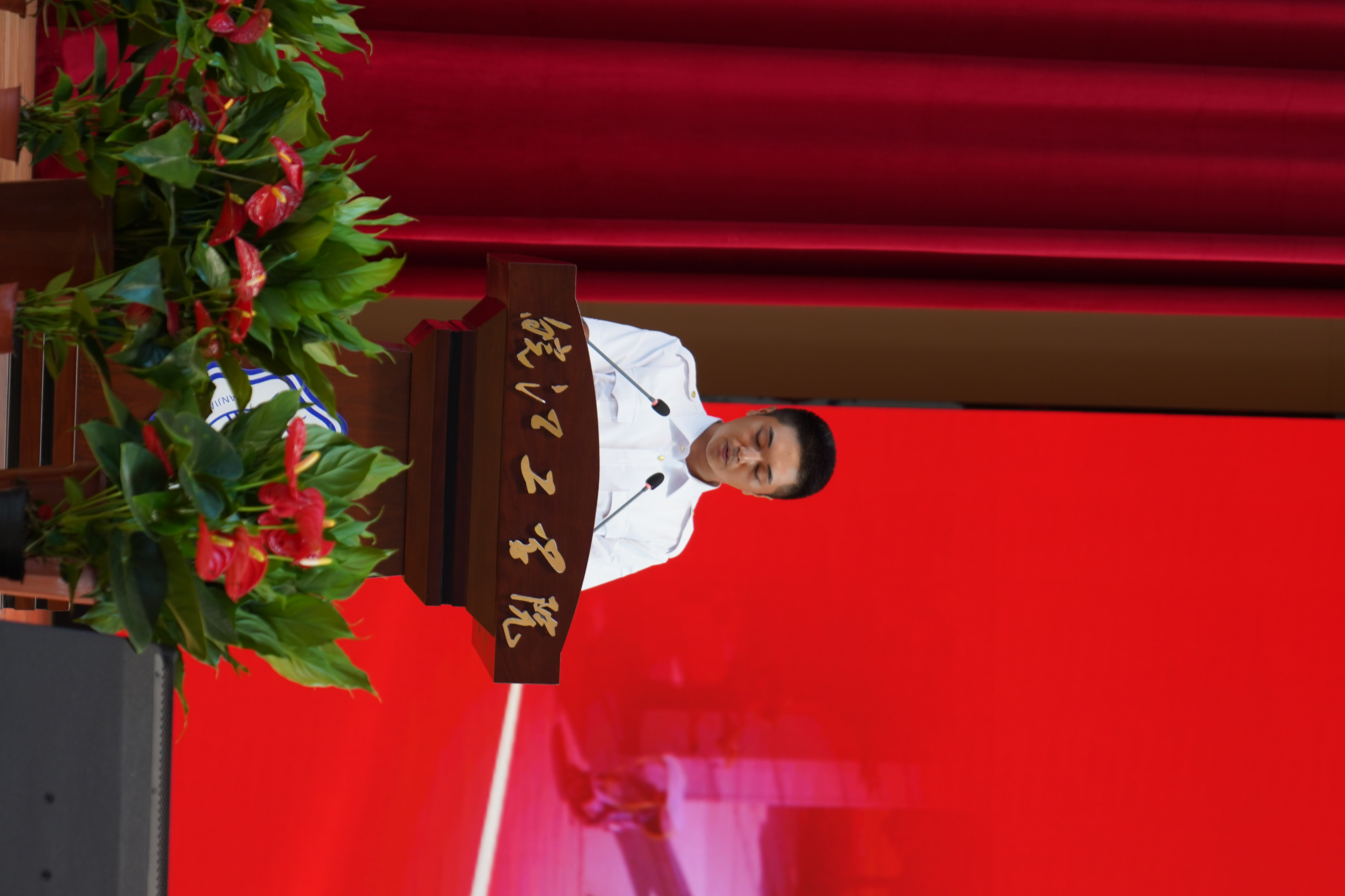 老生代表23级机械专升本宫旭辉发言,他寄语即将开启勠力前行征程的新生:要脚踏实地,在行而不辍中探寻真知;要志存高远,在胸怀家国时勇担使命。我们生逢其时,重任在肩,责无旁贷。在未来的日子里,无论大家身处何地,都要牢记,皖工永远是大家的坚实后盾。