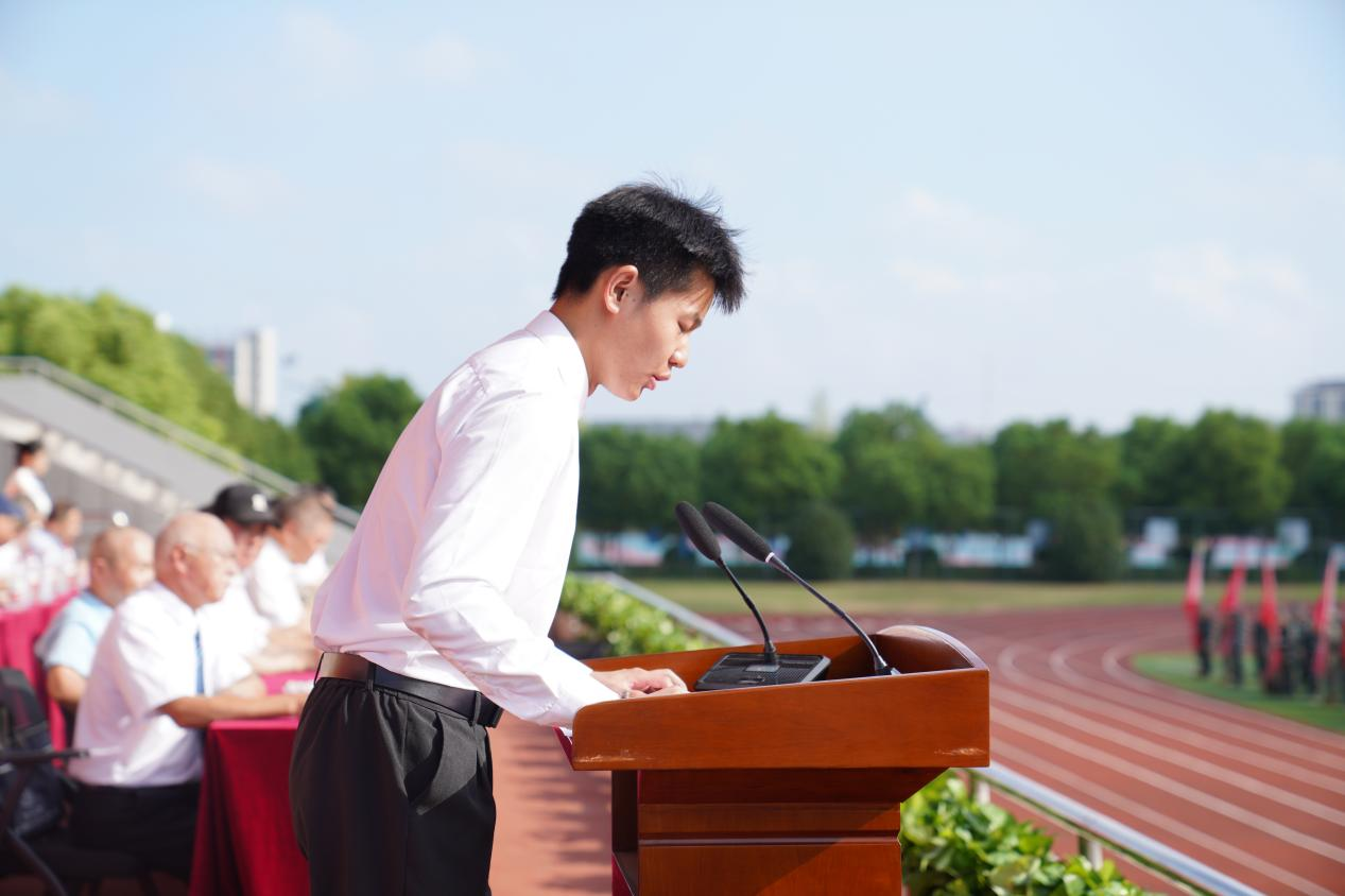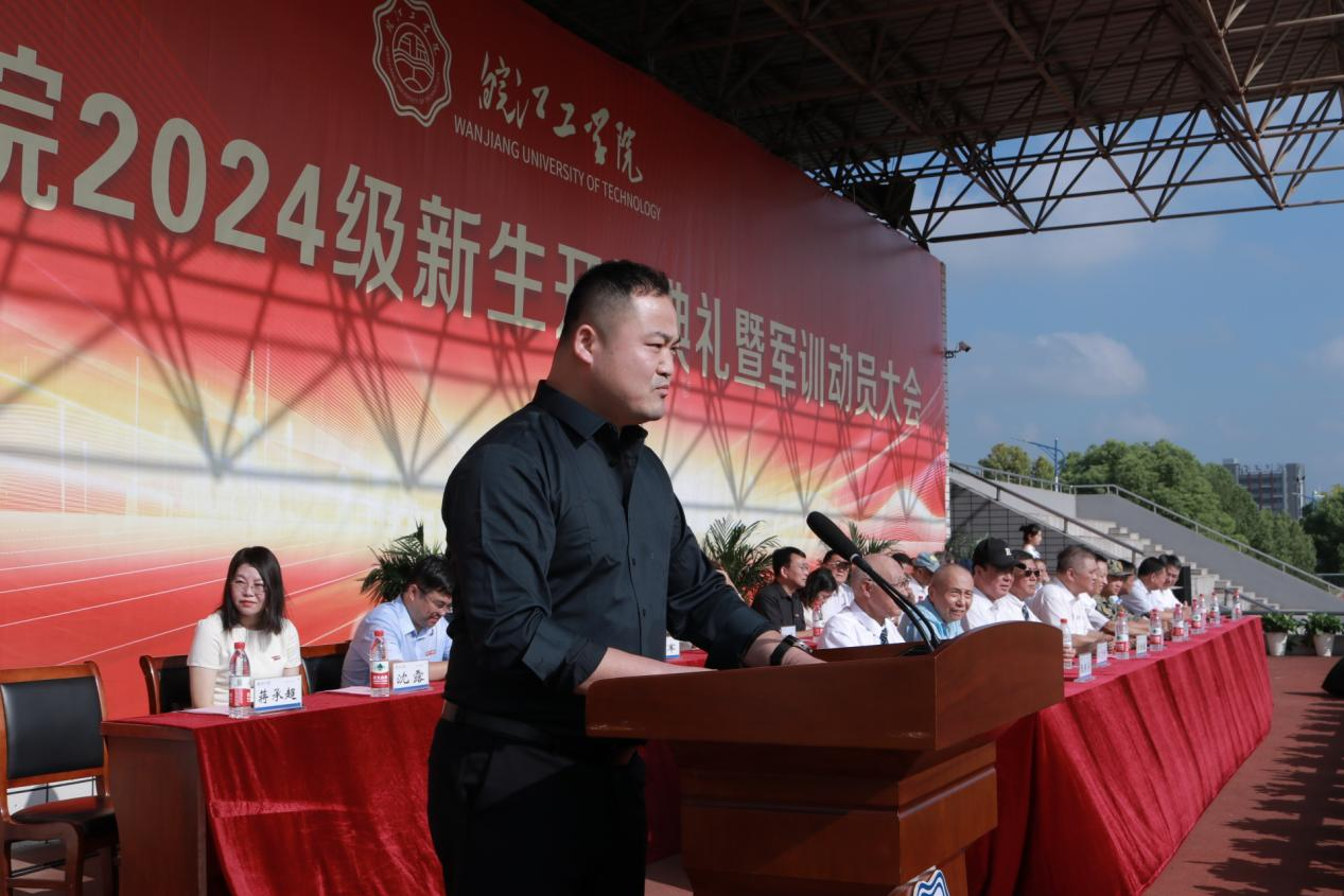 吴继敏代表全校师生对2024级新生的到来表示热烈欢迎,对家长和老师的辛勤培养致以崇高敬意,对来校指导军训工作的教官们表示衷心感谢。他希望新生们育德于心,立大德方能成“大人”;学会做人,铭记“上善若水”的校训,时刻注意高尚德行的培养和内在品格的塑造;益才于学,以无畏的勇气和坚定的信念,为自己的梦想坚持不懈、全力以赴。