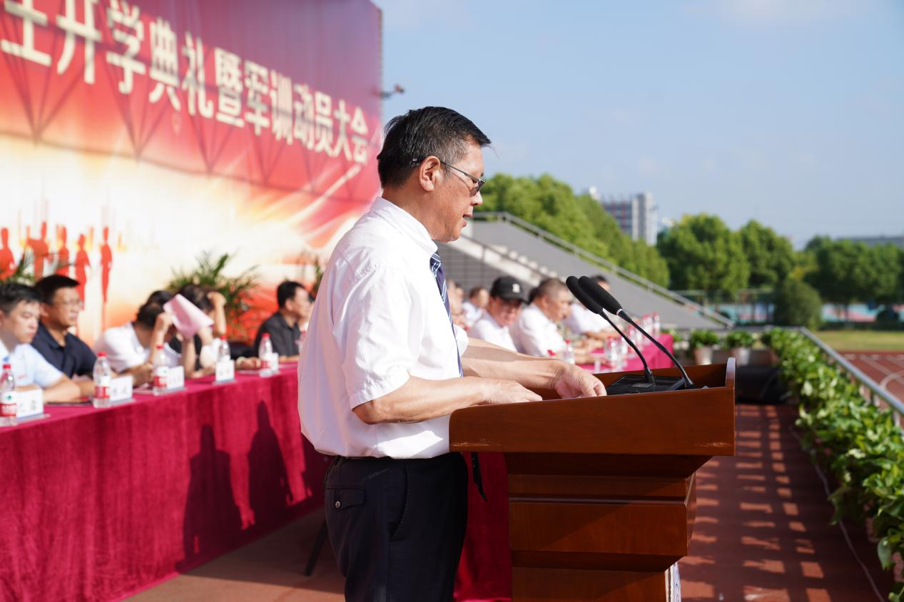 9月9日,beat365官网2024级新生开学典礼暨军训动员大会在郑蒲港校区田径场举行。董事长朱洪高,省督导专员、校党委书记丁家云,党委副书记、校长吴继敏,咨询委主任刘志祥,党委副书记孙良,常务副校长郑明东,副校长侯进元、阮怀宁、王志,各二级学院院长及各职能部门负责人出席大会,大会由郑明东主持。