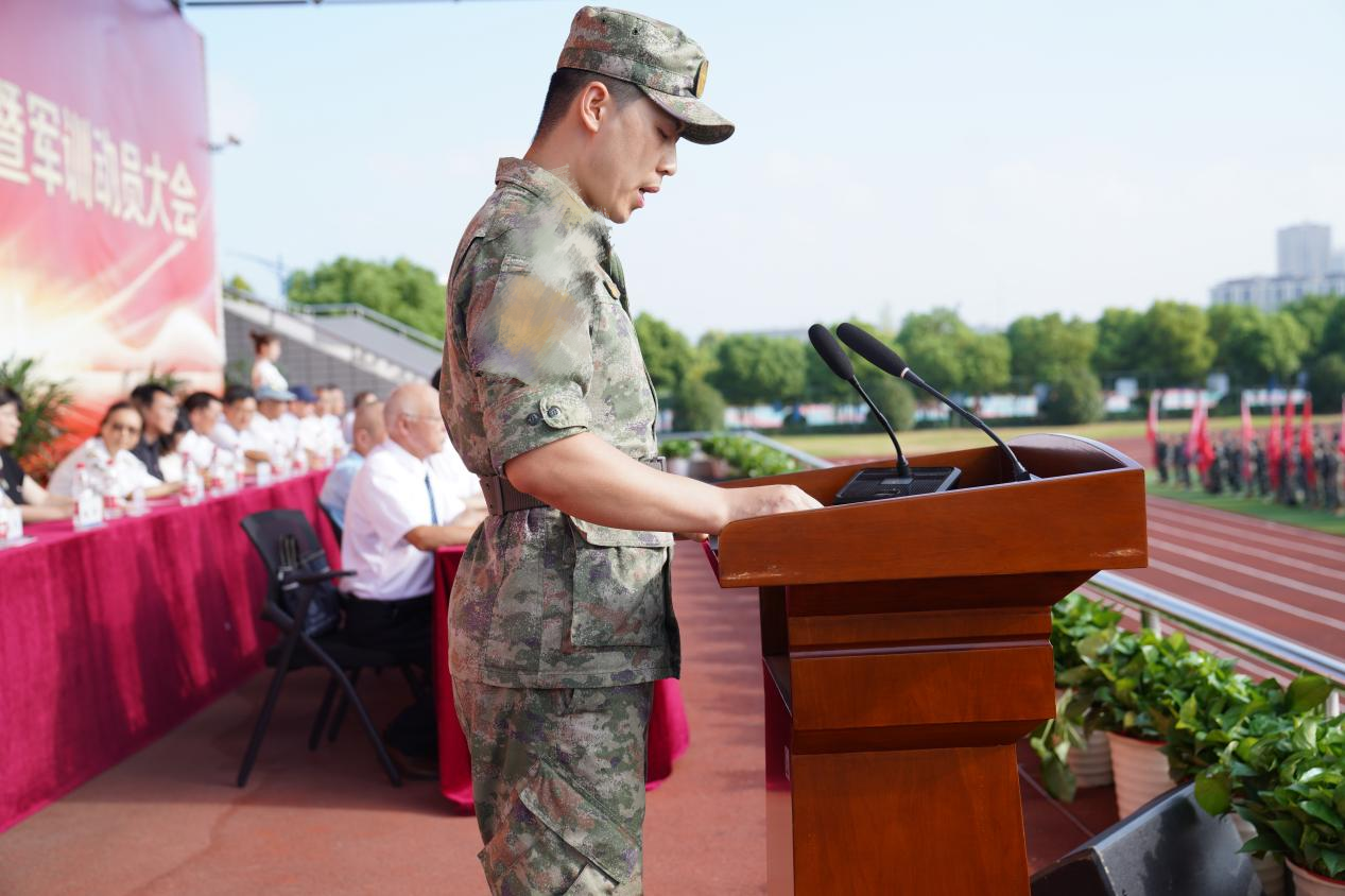 承训部队教官代表向2024级新生表示衷心祝贺。他希望军训可以锻炼同学们刚强意志和吃苦耐劳精神,在军训的队列里,感受纪律的严明,培养团队的协作意识;通过军训,铸就钢铁般的意志,为未来的学习与生活打下坚实的基础,凭借军训中磨砺出的品质,勇敢前行,永不退缩。