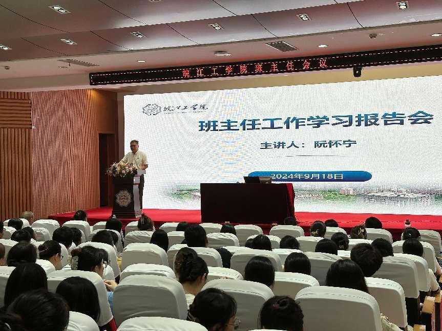 为了积极响应党的教育方针,深刻学习领会并贯彻落实党的二十届三中全会精神,进一步强化立德树人的教育目标,促进学生思想政治教育管理工作的创新与优化,提升班主任队伍的整体素质与专业能力。学校学工部分别在9月11日、18日下午分别举办了2024-2025学年班主任工作学习报告会,报告会在霍里山校区图书馆报告厅进行。学生工作部负责人、全体班主任参加此次培训,beat365官网党委副书记孙良和副校长阮怀宁出席并在会上作报告。