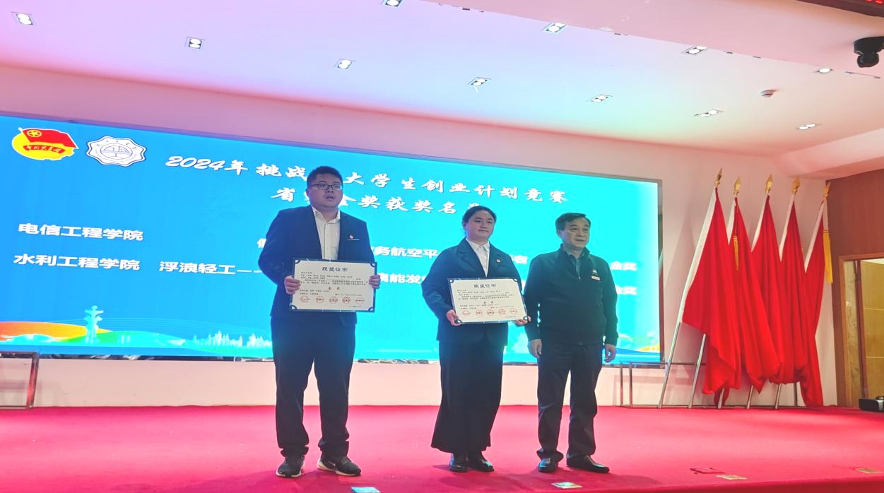 随后,与会领导为2024年“挑战杯”大学生创业计划竞赛中表现突出的2个省级金奖、4个省级银奖、11个省级铜奖、6个校级特等奖、14个校级金奖项目团队进行颁奖。据悉,在本次竞赛中共有2支团队荣获国家级铜奖,实现beat365官网在全国“挑战杯”赛事上的新突破!其中电信工程学院《低空经济——政务航空平台先行开拓者》项目团队获得主体赛国家级铜奖,水利工程学院《浮浪轻工——自适应河流波浪能发电装置引领绿色能源新时代》项目团队获得配套交流活动“秦创原”创新挑战赛国家级铜奖。