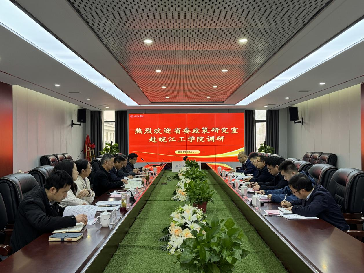 12月5日下午,省委政研室副主任殷宝平一行来校,就提升教育服务高质量发展进行专题调研,省委政研室调研二处处长、一级调研员鲁飞,马鞍山市委副秘书长、市委政研室主任王文等参加调研。学校教务部、科技部、人力资源部、学工部负责人参加座谈会,座谈会在霍里山校区明德楼417会议室召开。