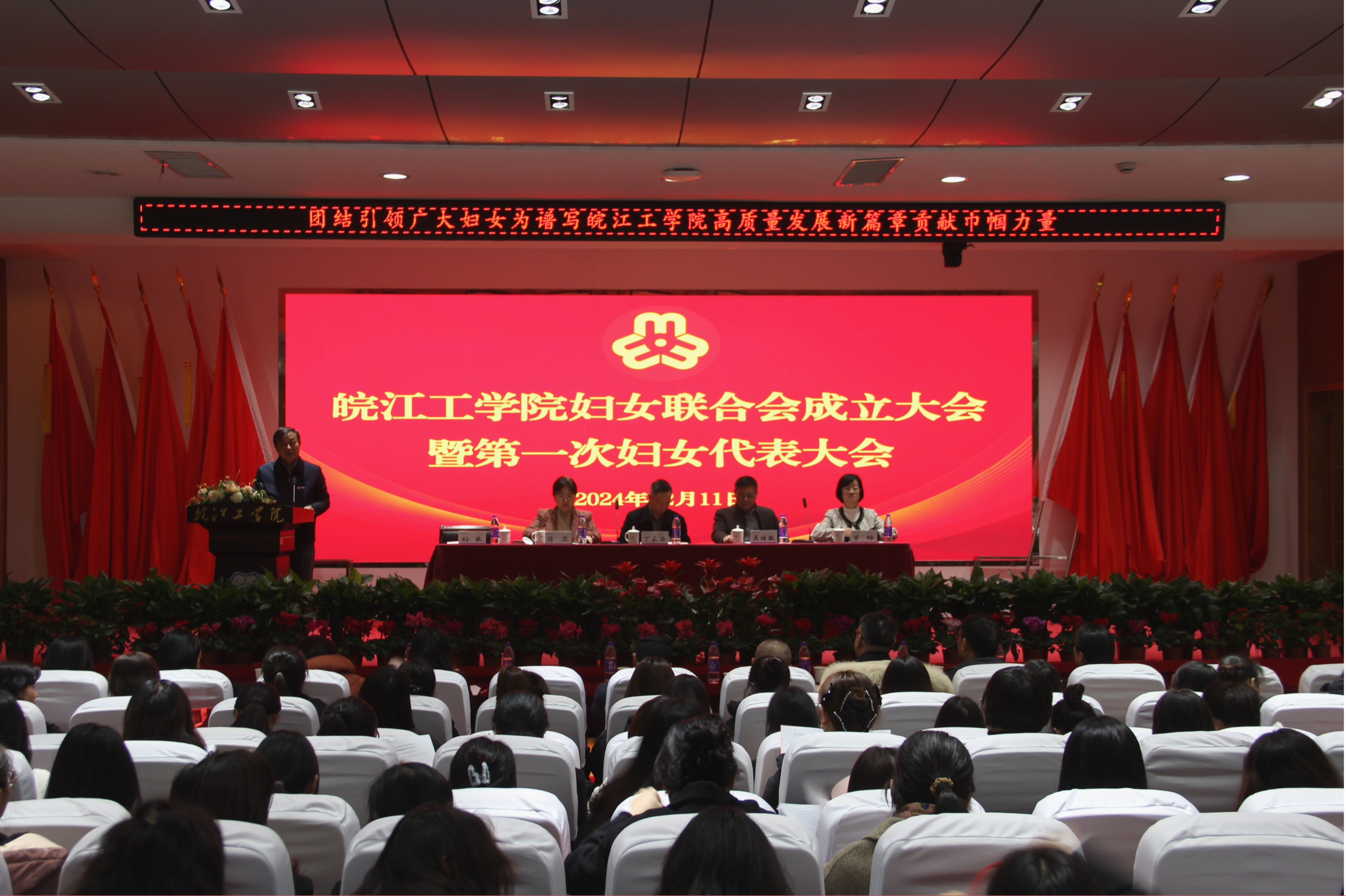 丁家云代表学校向大会的召开表示祝贺,他指出,在全省上下深入学习贯彻党的二十届三中全会精神和习近平总书记考察安徽重要讲话精神之际,学校成立妇联组织,召开第一次妇女代表大会,具有重要的现实意义和深远的历史意义。这不仅是学校妇女工作的一件大事,也是全校妇女同胞政治生活中的一件喜事。丁家云就如何发挥妇女联合会及其执委会的作用提出三点意见:一、充分认识妇女工作在两个文明建设中的积极作用。更好地团结女性师生员工,为beat365官网顺利通过合格评估贡献出“半边天”的力量。二、妇联组织要认真履行职责,发挥积极作用。一是要强化政治性,把妇联组织打造成忠诚于党的红色组织。二是要强化先进性,把妇联组织打造成奋发有为的实干组织。三是要强化群众性,把妇联组织打造成温情温馨的暖心组织。三、加强党对妇联组织的领导。为妇女事业发展营造良好的氛围提供坚实的保障。