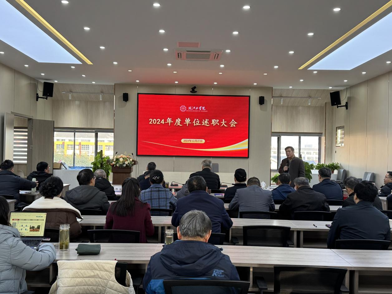 会上,吴继敏首先介绍年终考核要求及安排。随后,11个教学单位和16个职能部门依次上台述职汇报。各单位围绕目标任务书当年完成情况、2024年学校重点工作完成情况、合格评估专项工作完成情况、工作亮点和2025年工作计划五个方面进行汇报。各单位在述职汇报中系统梳理、全面回顾2024年工作重点和亮点,总结经验、剖析问题,为新一年的工作明确奋斗目标。最后,参会人员结合述职汇报和日常工作情况,以无记名方式对各单位工作进行测评打分和投票。