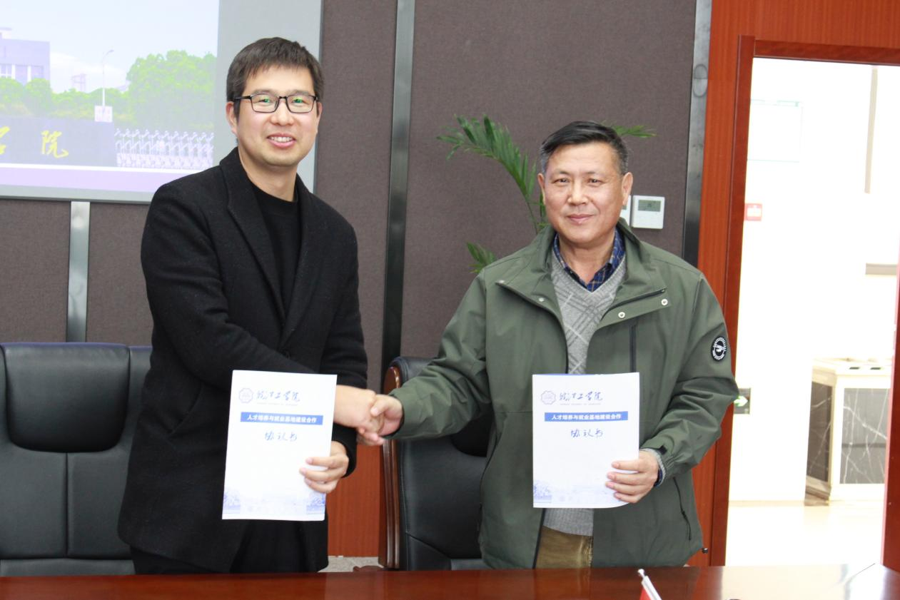 签约仪式上,吴继敏分别与华夏中然生态科技集团有限公司等9家企业签订人才培养与就业基地建设合作协议书。(院务部 供稿)