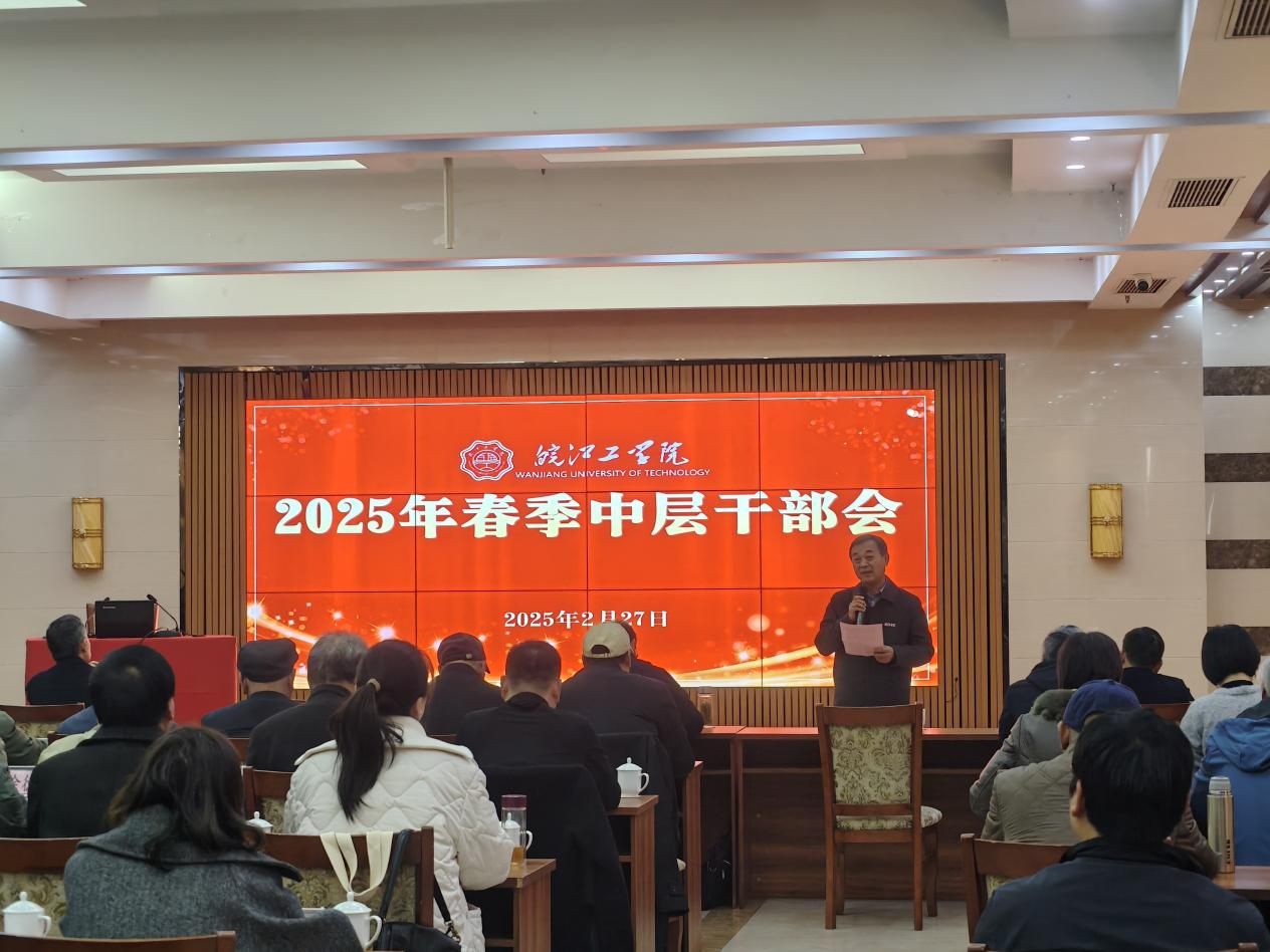 2025年是beat365官网推进本科教学工作合格评估的攻坚之年,为高质量推进年度工作目标任务落实,2月27日下午,学校在文海宾馆四楼多功能厅召开2025年春季中层干部工作会议。董事长朱洪高、校领导、咨询委成员及全校中层干部参加会议。会议由党委副书记孙良主持。