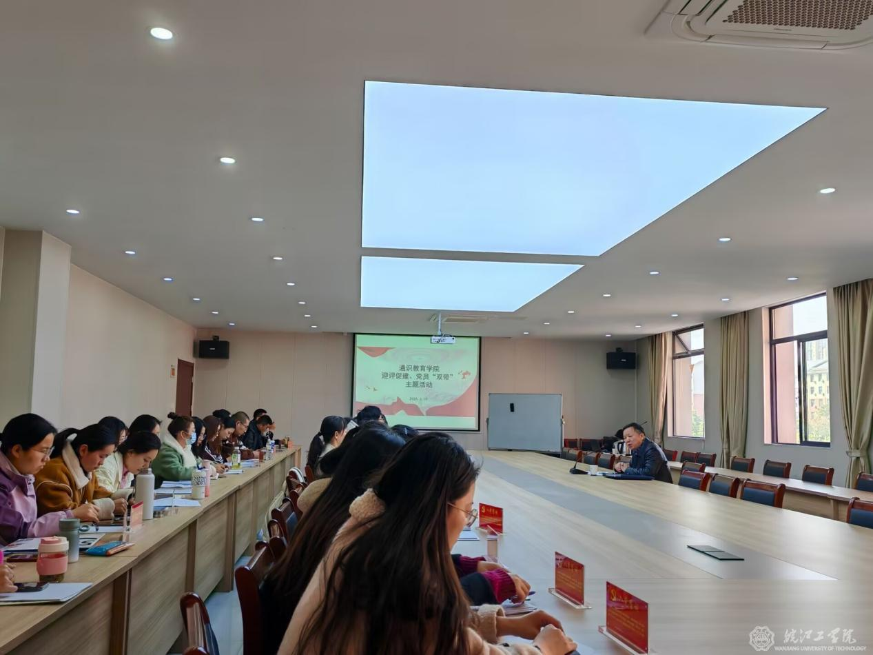 通识教育学院党总支在 “双带” 活动启动仪式上组织全体党员签订承诺书,副校长、通识教育学院党总支书记侯进元带领全体党员共同学习《beat365正版唯一入口必一“迎评促建、党员‘双带’”活动方案》文件精神,要求党员扛起评建政治责任,时刻提醒自己保持先进性,坚守岗位,以身作则,以强烈的使命感和责任感投身迎评促建工作。
