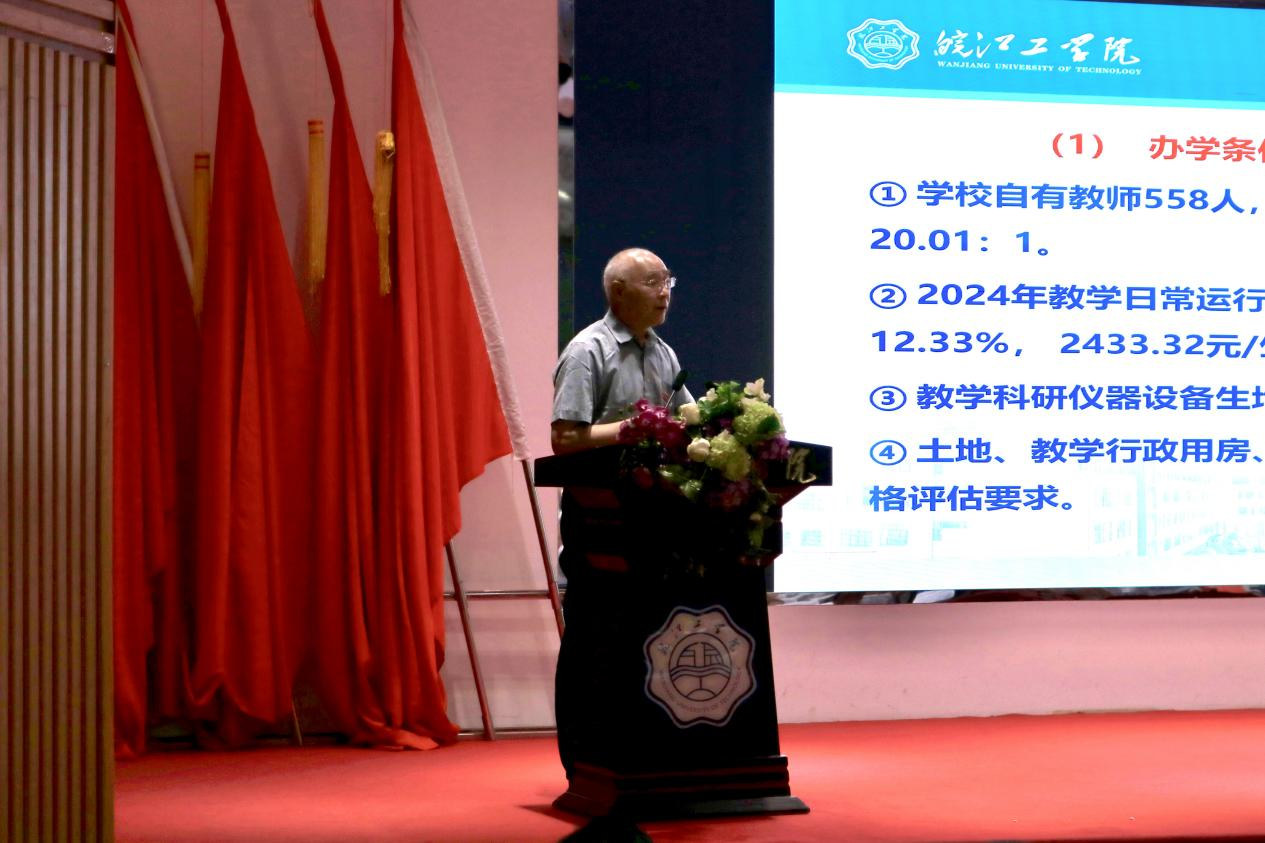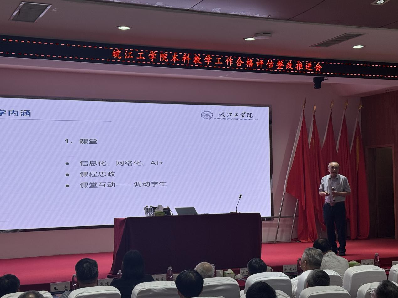 副校长阮怀宁着重从教学工作的角度作评估整改报告,从教学内涵、硬件设施、软件条件、部门学院协同及评估成果呈现五方面,部署几大整改任务:提升教学内涵,强化课堂信息化与课程思政,规范教学流程,严控不及格率,做实毕业设计;优化硬件与实践,推进实验室标准化,完善实习基地管理;强化管理保障,确保数据材料规范,提炼学院特色亮点并做好展示。
